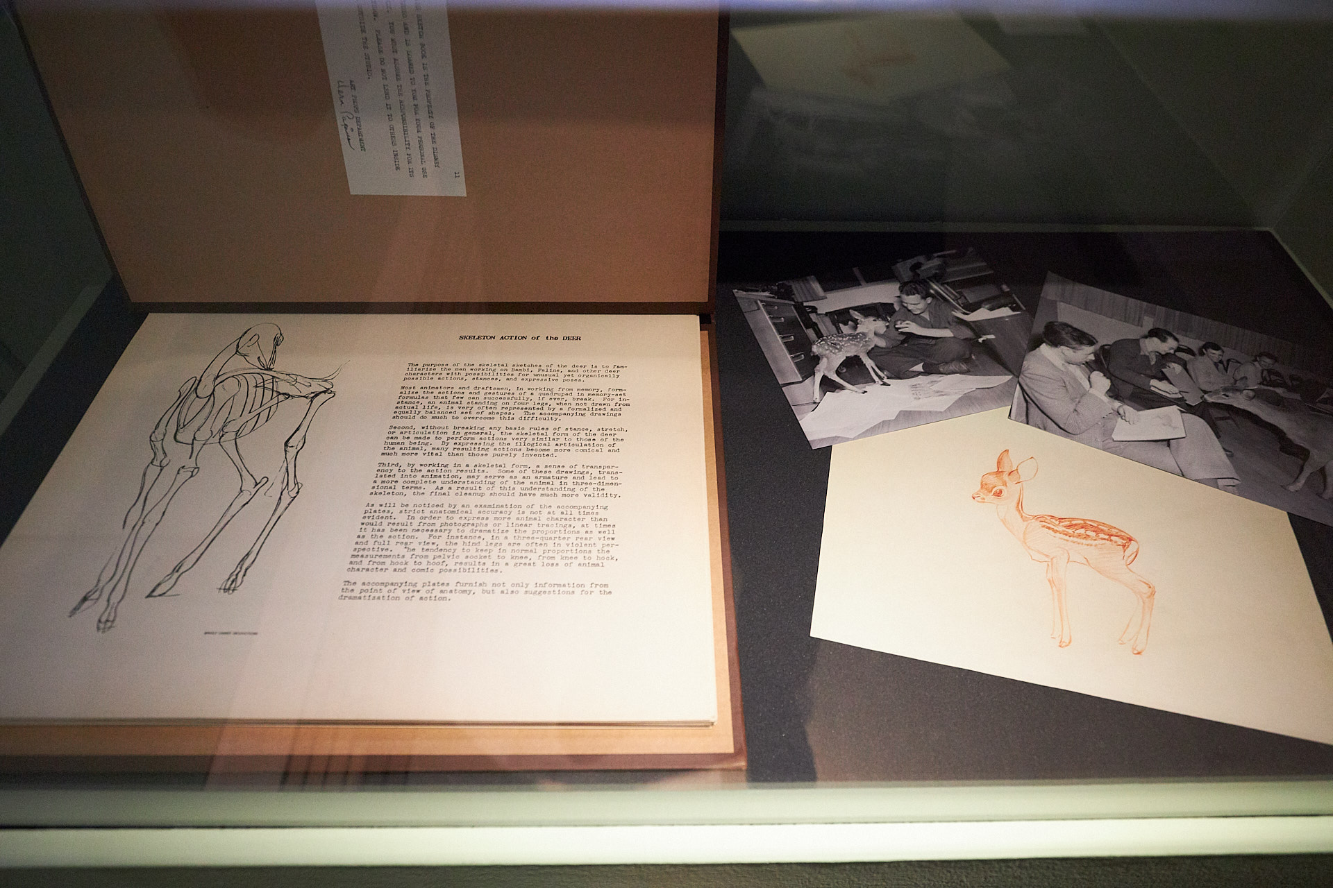 You’ll also see dozens of behind-the-scenes photographs, like this one depicting Bambi’s animators with a real-life deer.