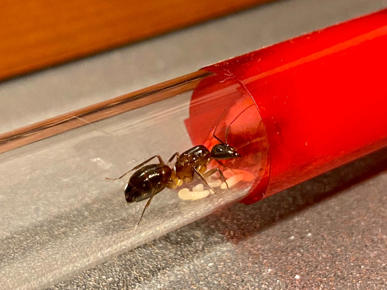 How to get started: Put the queen ant into a clean test tube with some water and cotton balls to house her in for the first two months. Watch this video below by Just Ants to learn more about a basic setup for your queen ant: