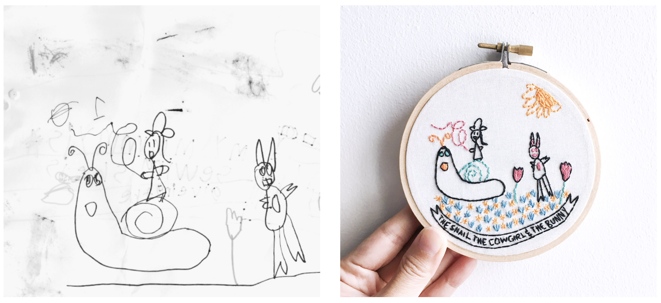 WHO: Like most parents of young children, Inez Tan, mum of two and a former fashion merchandiser and buyer, possesses a growing stack of drawings at home. While most of us don't know what to do with these cute, but often inexplicable art pieces, Inez recreates them with embroidery.