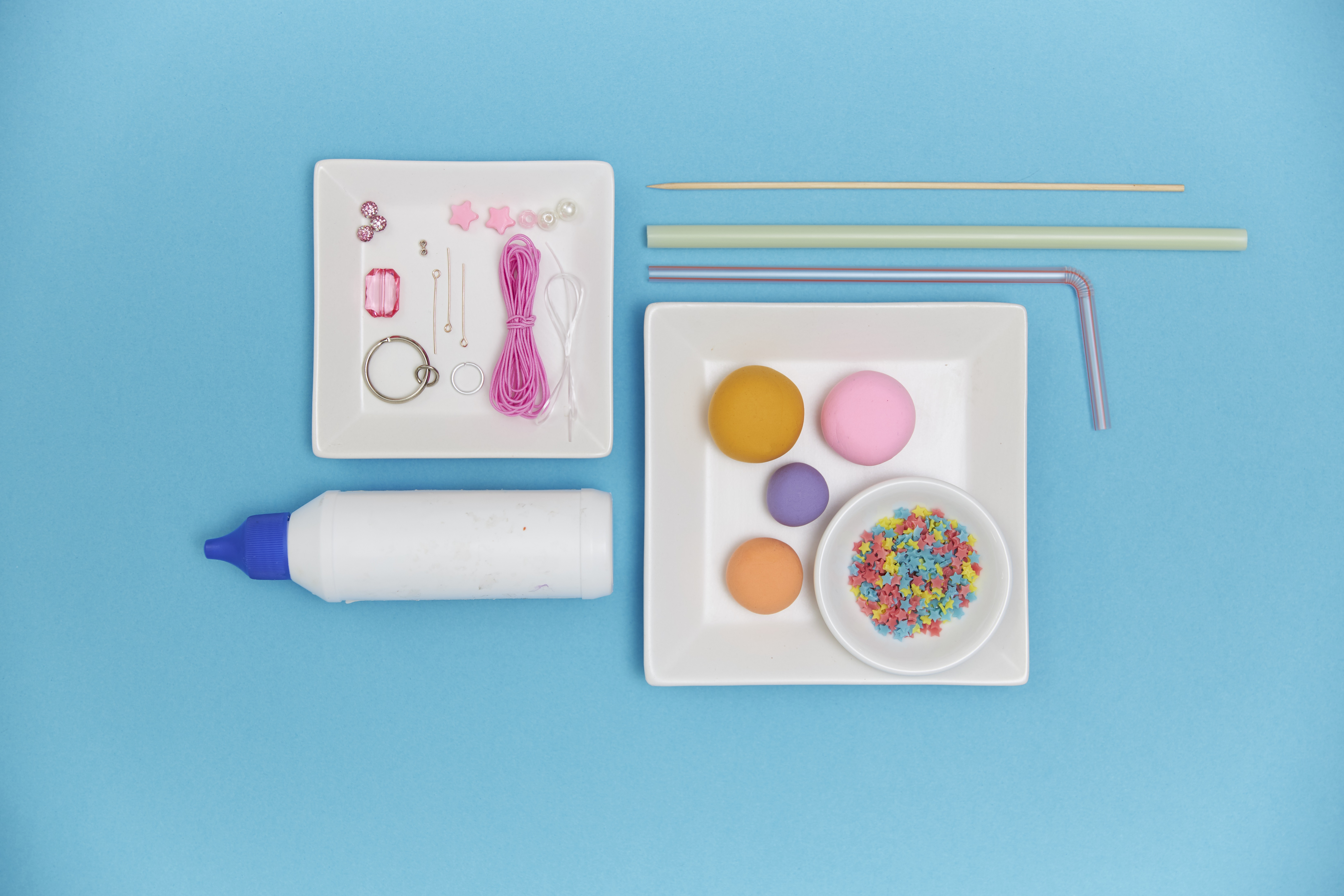 Air-dry clay is easy to work with and perfect for this activity as it requires no baking or firing; it simply hardens by itself. DIY donuts pendants can be used in many imaginative ways and turned into jewelry, gift magnets or props in pretend play. There are endless ways to decorate donuts, so have fun exploring once you’ve got the basic steps down.
