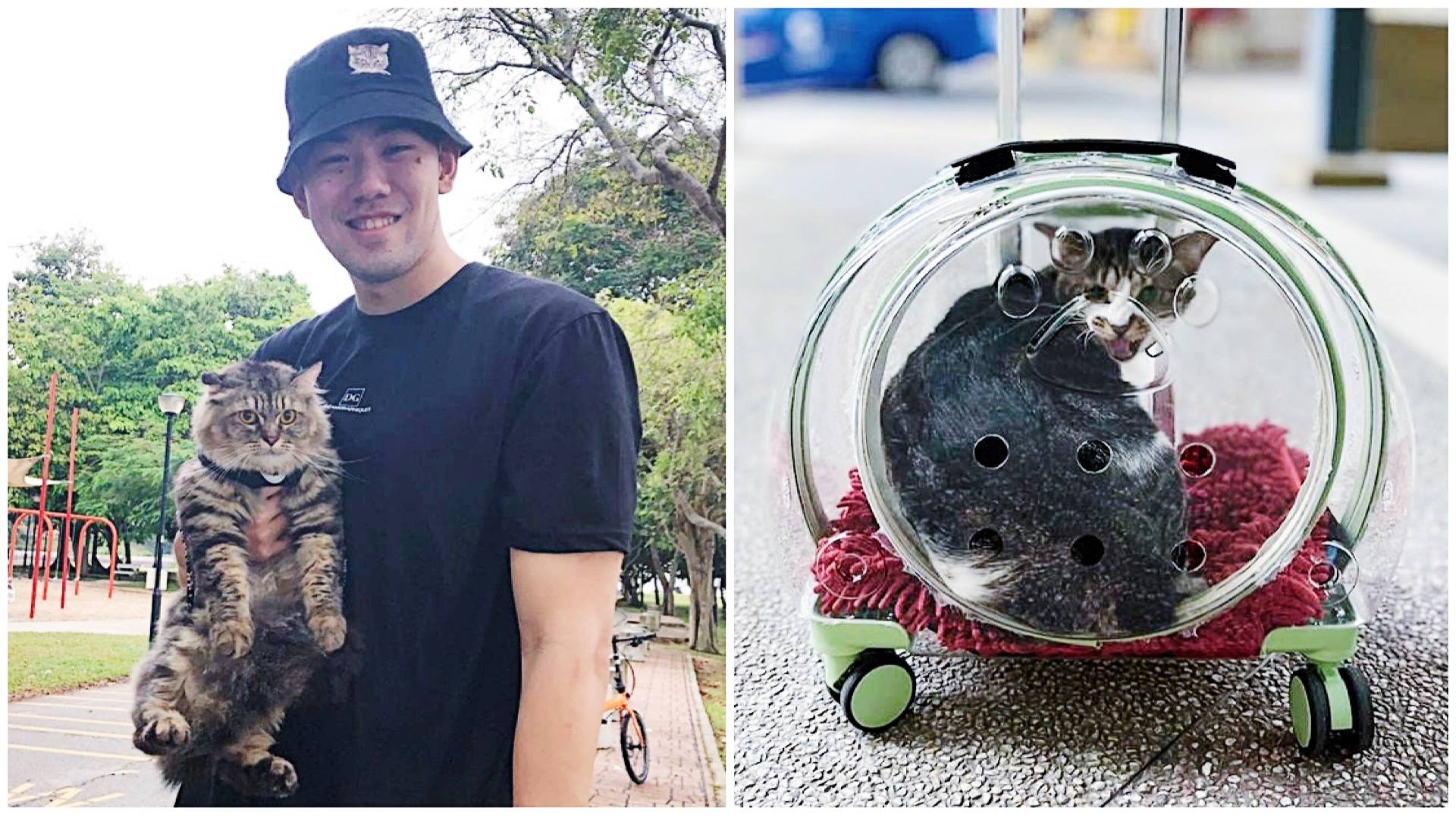 National basketballer Delvin Goh makes us want to dribble dribble, for sure, but it's his new pet-trolley business that's made us pause (paws?) to ponder: What would turn this 27-year-old's life-long fear of felines into a purr-fect cat-titude? Answer: Meeting his cat-loving wife, retired national taekwondo athlete Chelsea Sim. Aww!