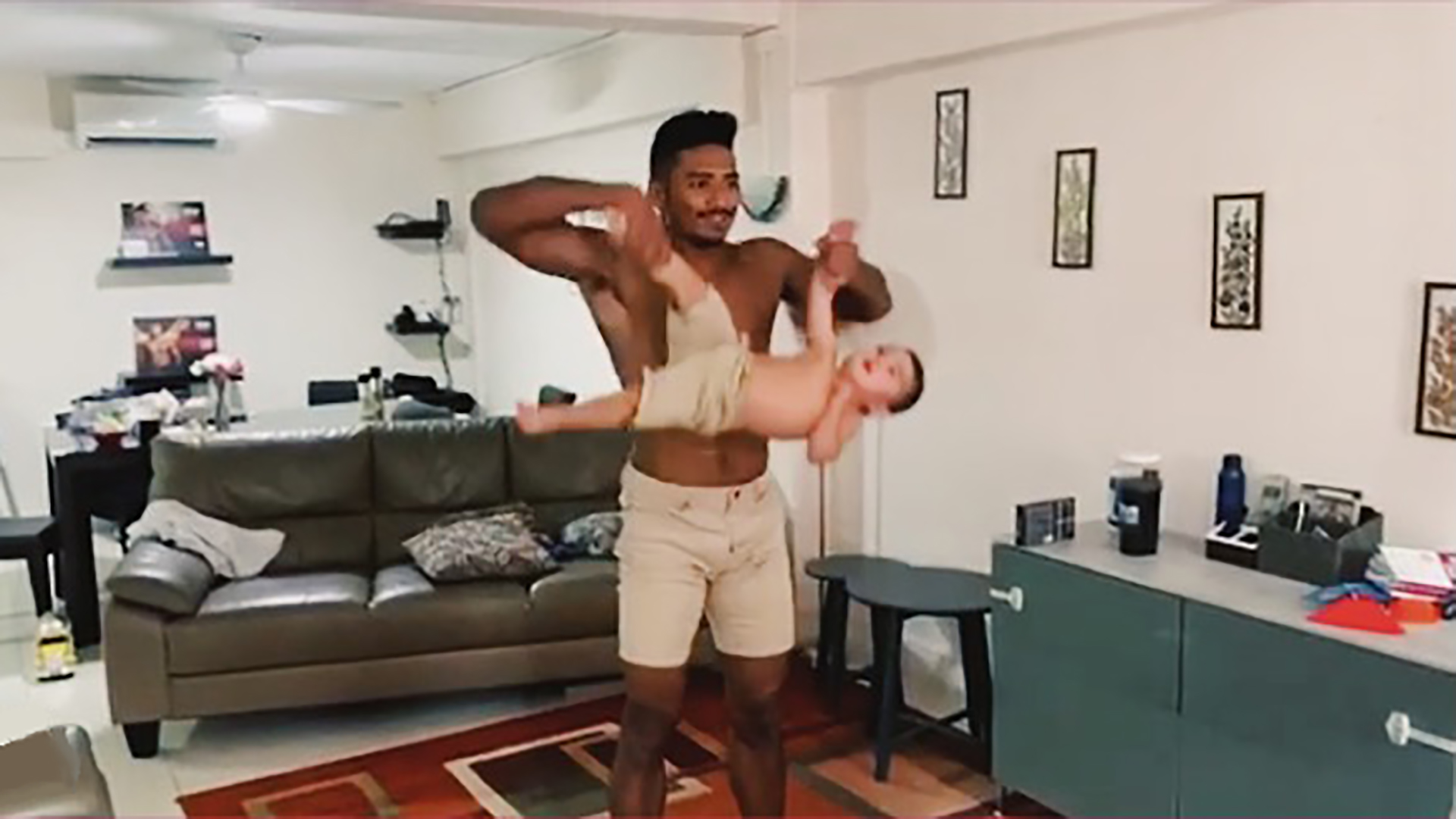 No Weights At Home? Use Your Kid Lah, Like This MMA Fighter Does