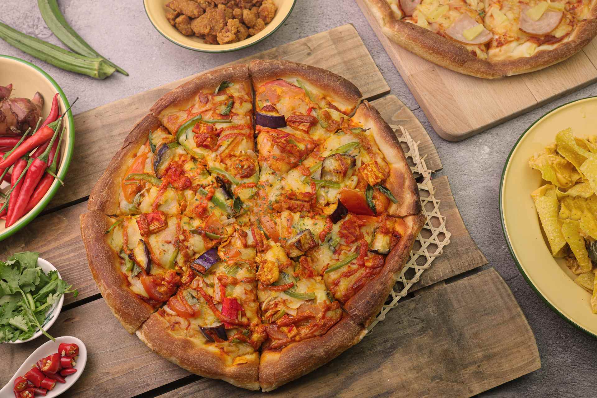 For Hari Raya, Pizza Arc is offering a special $59.90 bundle comprising a 12-inch assam curry seafood Premium pizza, a 12-inch Classic pizza, your choice of nacho chips or satay popcorn chicken, and two cans of VIDA soda.