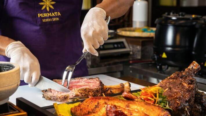 Permata’s Ramadan buffets never disappoint. And this year is no different. The spread ($88) is warm and hearty, with festive dishes that you’ll want to dive into whether or not you’ve been fasting. Start with the hard-to-find mee maidin (yellow noodles in a thick geragau shrimp gravy) and work your way across delights like opor chicken rice balls with sambal hijau, Minangkabau lamb ribs, and baked prawns lemak nanas. You’ll want to save room for dessert because options like bubur som som (coconut milk and rice flour pudding) can be difficult to find outside of Malay homes.