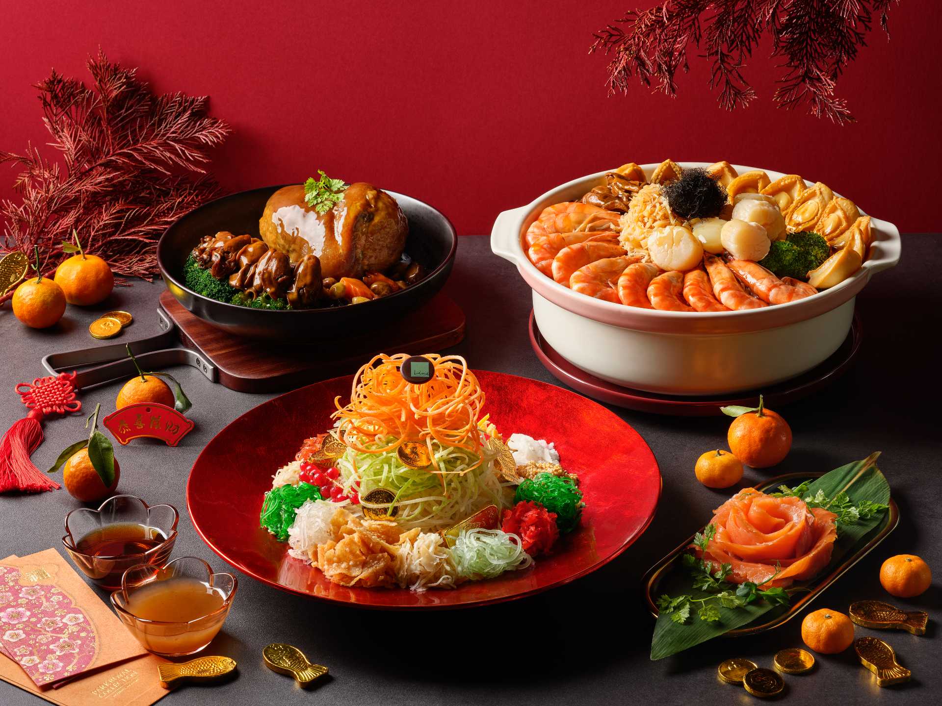 All the dishes you need for a successful reunion dinner are but a click away at Lime On The Go, Lime Restaurant’s takeaway portal. Start with the Prosperity Smoked Salmon Yu Sheng ($68), then reach for the Treasure Pot Reunion Pen Cai ($338), before add-ons like Fragrant Glutinous Rice with Chinese Sausages ($45) and Braised Eight Treasure Pork Knuckle ($68). There are snacks and cakes to choose from too, so you can create your own “balanced” meal.