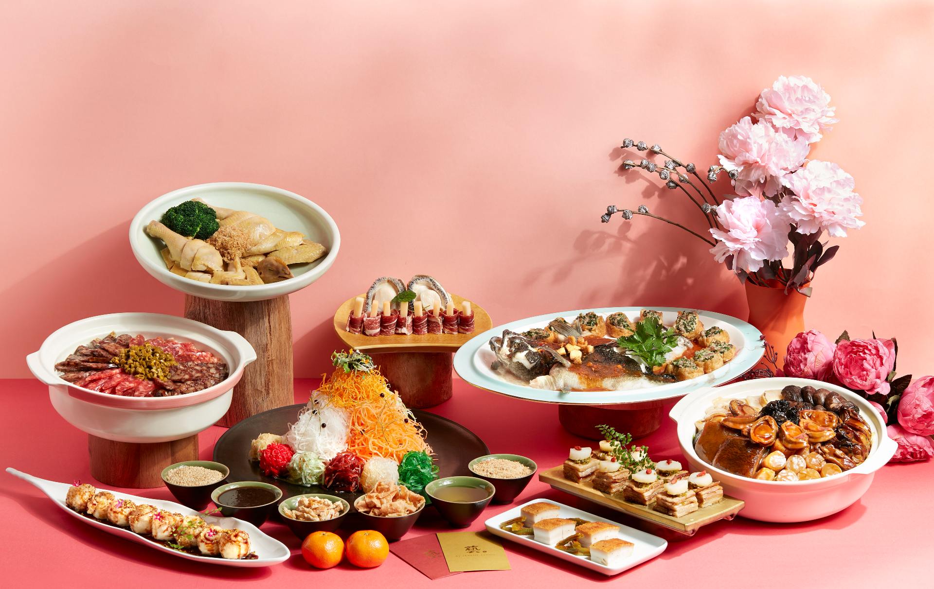 This set lives up to its name with its cool $1,388 price tag. Prepared by the team behind Yi By Jereme Leung, it feeds eight people amply and comes with dishes like Prosperity Yu Sheng, Honey Soy-smoked Patin with osmanthus, Baked Eggplant and Hokkaido Scallop with roasted pepper sauce, Crispy Pork Belly with yellow mustard… and those are just the starters. For mains, tuck into Steamed Chicken with deep-fried ginger and broccoli, Steamed Soon Hock with brown beans, pineapple sauce and Guangxi bean curd puffs, and a Prosperity Seafood Treasure Pot with ingredients like sun-dried oysters,10-head abalone mushrooms, and fa choy black moss.