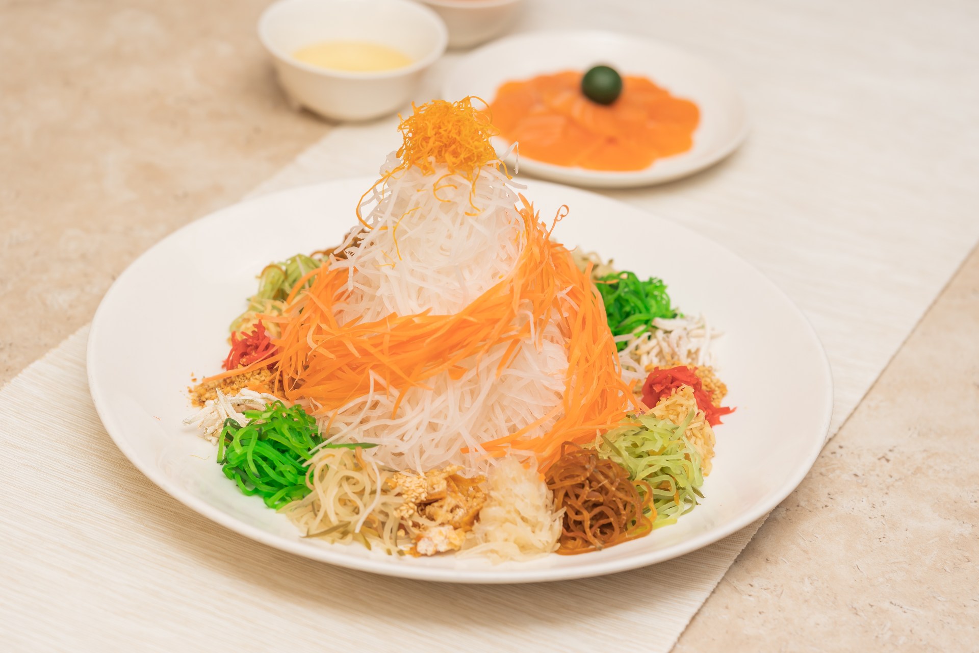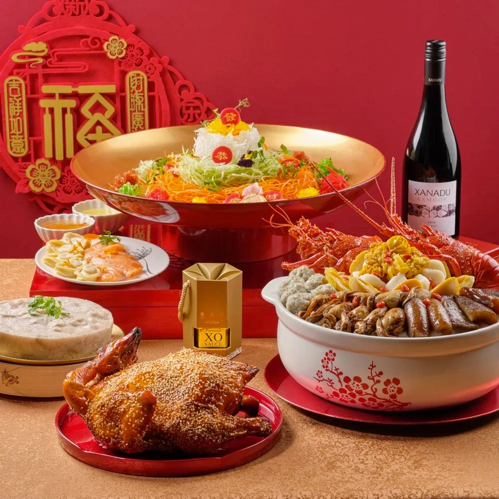 To keep you in good spirits throughout your meal, this Superior Set (from $894) from Pan Pacific Singapore’s Hai Tien Lo comes with a bottle of Xanadu Exmoor Shiraz. All the better to sip and savour as yet another nosy relative asks about your love life. Wine aside, the set comes with Fortune Yu Sheng, Superior Treasure Pot, Shacha Sesame Roasted Chicken, Premium XO Chilli Sauce and Chinese Taro Cake.