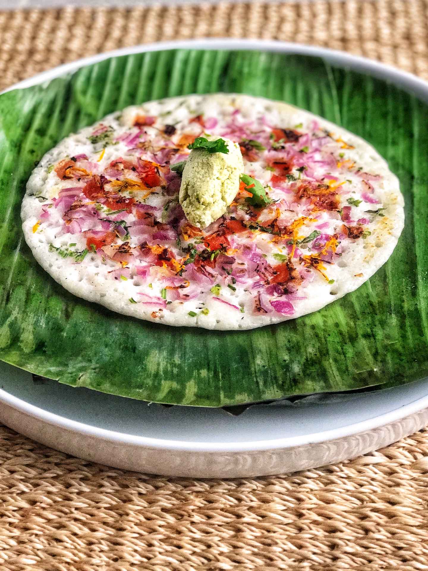 I usually pair my oothappam creations with a coconut chutney as it pairs well with any vegetables.