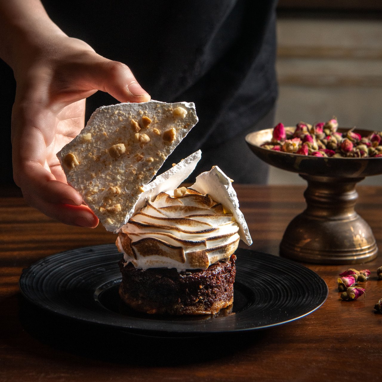 Fine chocolate lovers will appreciate the restaurant’s collaboration with Swiss chocolatier Laderach. Just for the occasion, they’ve created a chocolate berry brownie inspired by Laderach’s popular hazelnut dark FrischSchoggi. With a base of digestive and hazelnut biscuit, the hazelnut and berry-strewn brownie — made using Laderach dark couverture, of course — is served with a spiced dark chocolate ice cream and shards of hazelnut meringue.