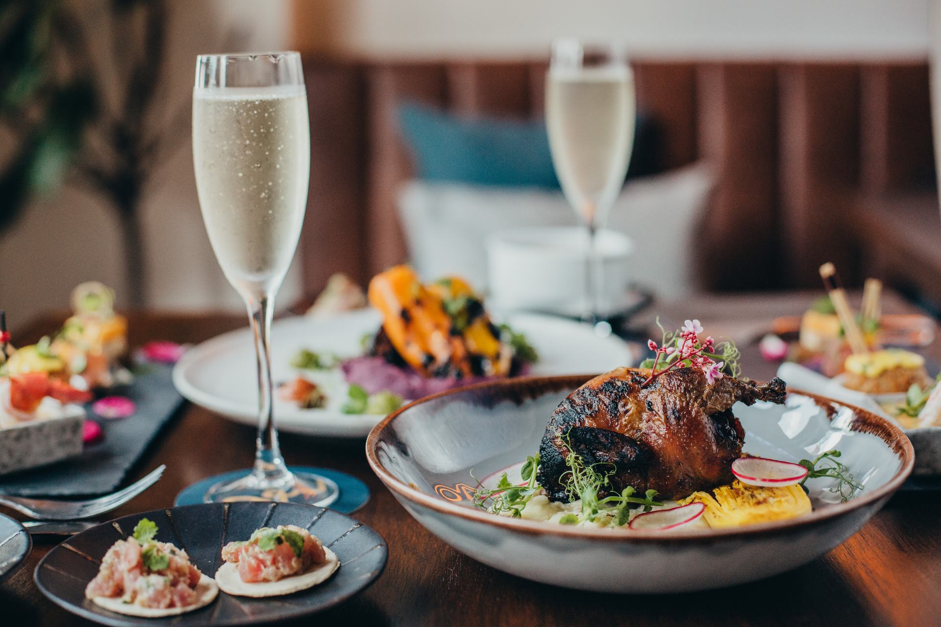 The night begins with a pair of Sunseeker oysters and a glass of bubbly before you enjoy a cocktail made with Chivas 12 Years, citrus, vanilla honey and chartreuse. Then settle in with your better half as you gaze at the stunning skyline before you.