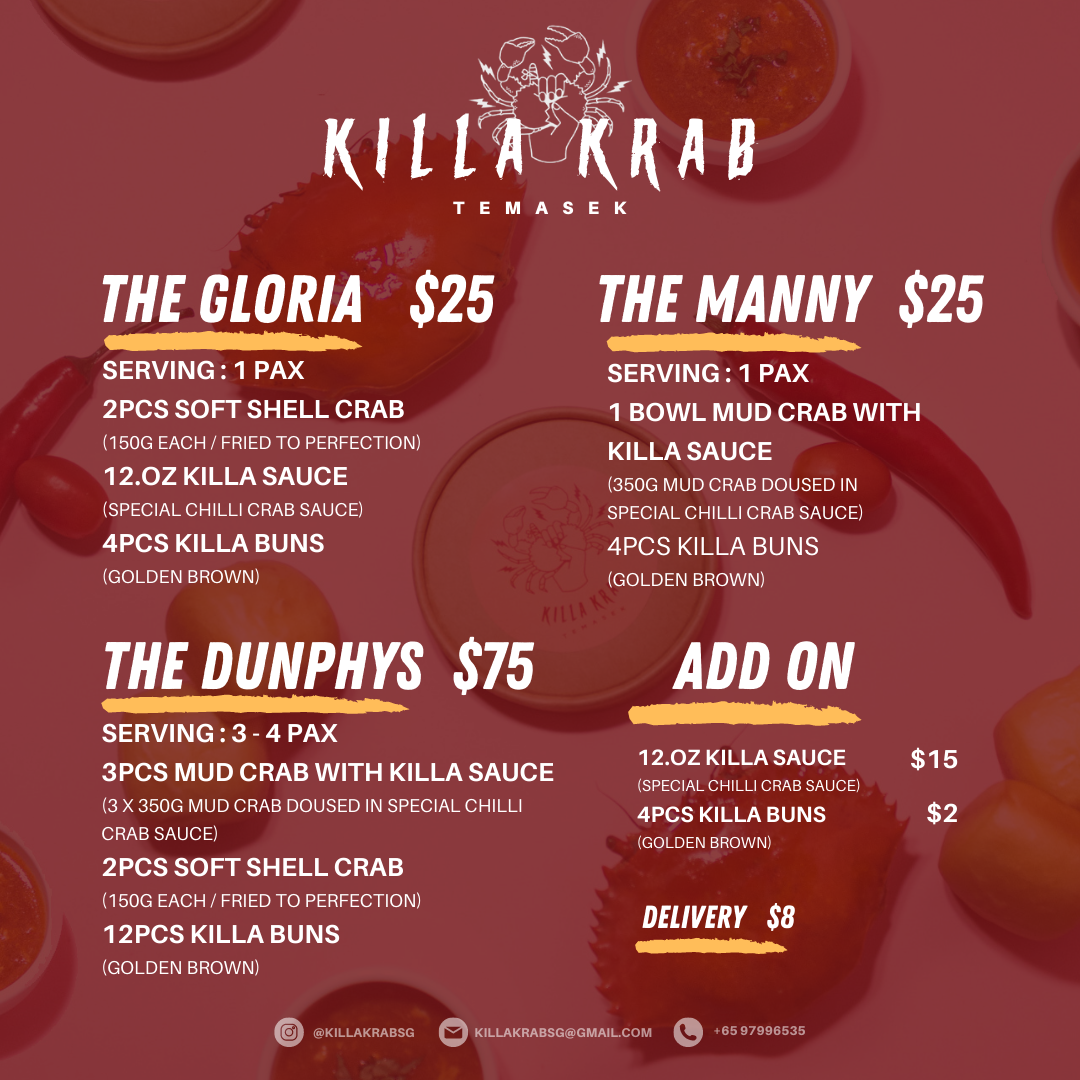 Orders can be placed via Killa Krab's form at linktr.ee/killakrabsg