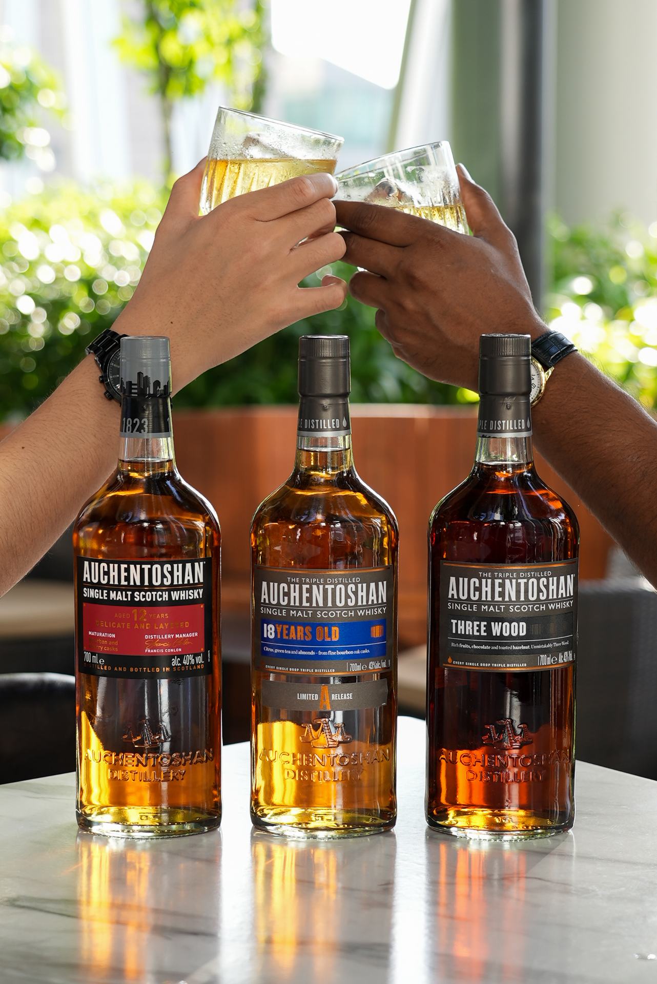 Auchentoshan’s whiskies are known for their triple distillation process that yields easy to appreciate, ultra-smooth blends. The flight features Auchentoshan 12 Years, a Lowland single malt whiskey; 18 Years, redolent of fresh tobacco leaves accented with green tea and almonds; and Three Wood, matured in American bourbon, Spanish Oloroso sherry, and Pedro Ximenez sherry wood casks.