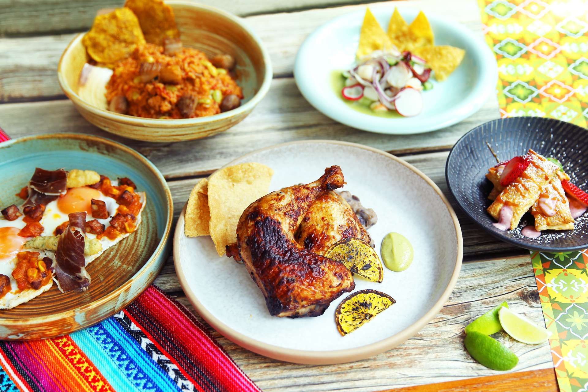 There is Latin-American comforts aplenty, including arroz con gandules (Puerto Rican pork and rice spiced with piquillo peppers), Cuban mojo chicken with potato puree and tostadas, and a torta de milhojas (a dessert comprising layers of puff pastry, dulce de leche, cream cheese and fruit). The set comes with a lemon-mint cocktail or a virgin Granny Smith mojito spiked with ginger ale.
