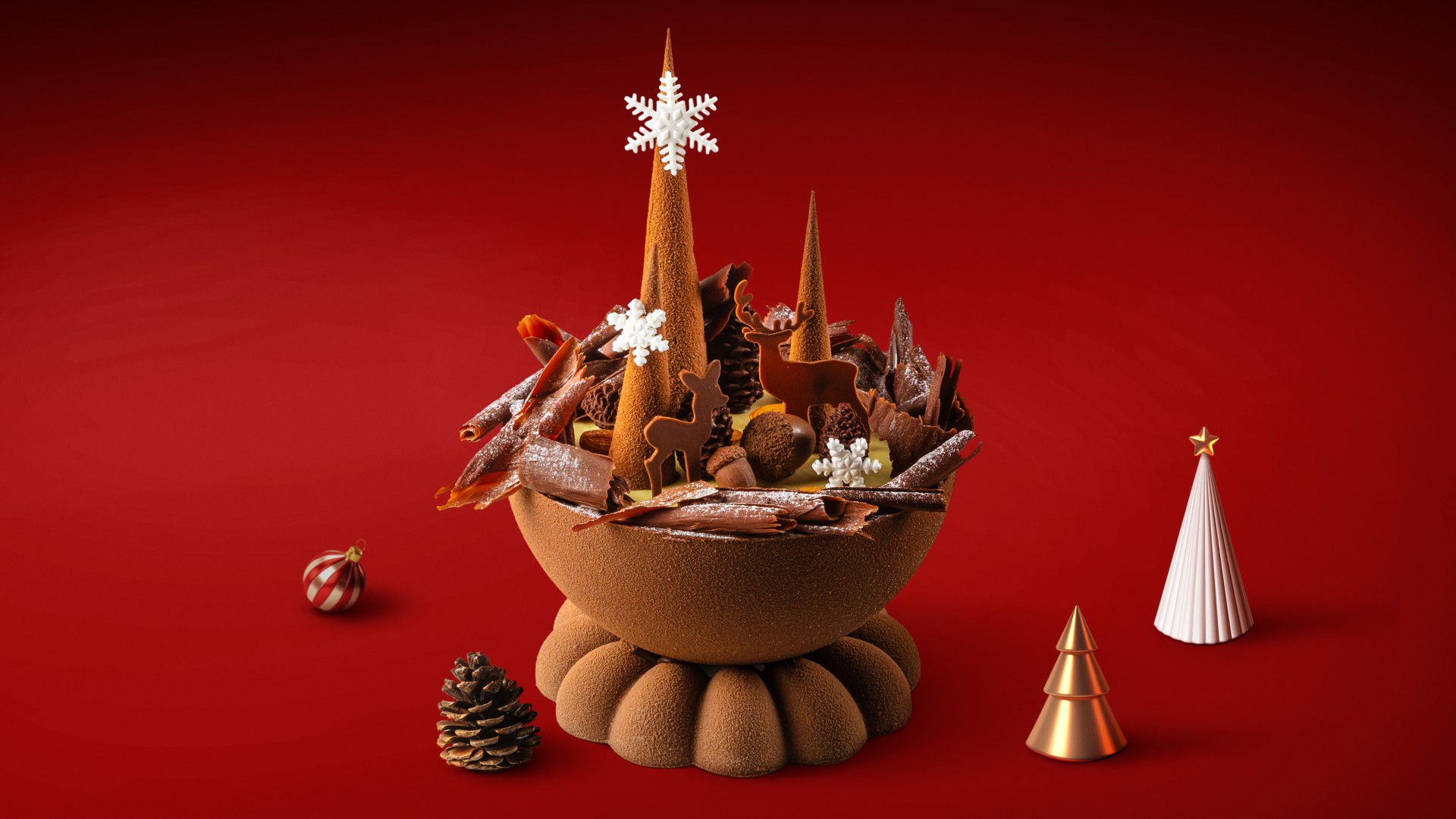 This is one of those rare confections that taste as good as they look. Resorts World Sentosa’s pretty-as-a-picture Noel Forest Chocolate Boule ($128, 1.2kg) is a delicious bowl of sweet treats that everyone can dig into. Beneath the beautiful chocolate scenescape of deer in an enchanted forest are layers of gingerbread praline, smooth Madagascar chocolate mousse, fir honey, and fruits of the forest compote. Together they taste much like a more indulgent Black Forest cake. Totes worth the splurge!
