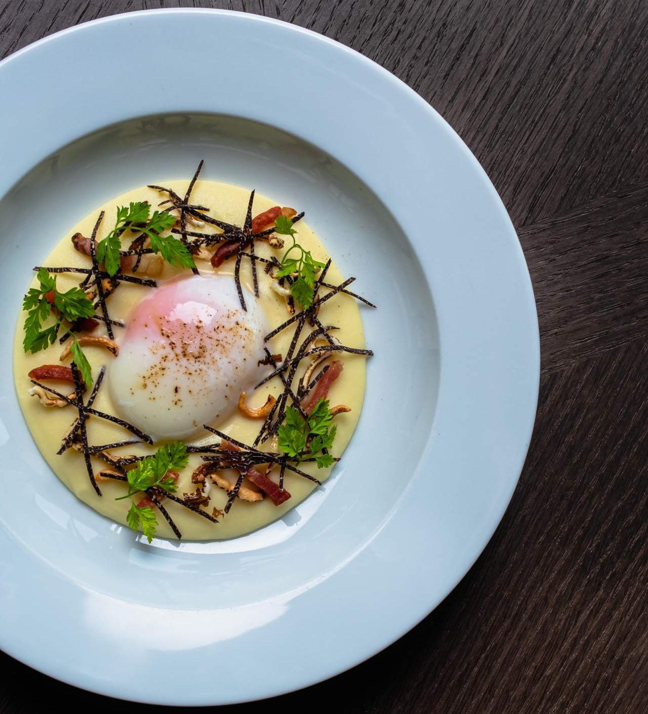 Naturally, there are eggs in many forms – and in this case, they are specialty cage-free eggs, thank you. The Eggs Platter heaves with devilled eggs, scotch eggs and eggs topped with avruga caviar, which you can graze on while you ponder the carving board of roasted lamb shoulder, sausages, honey-baked ham and root veggies.