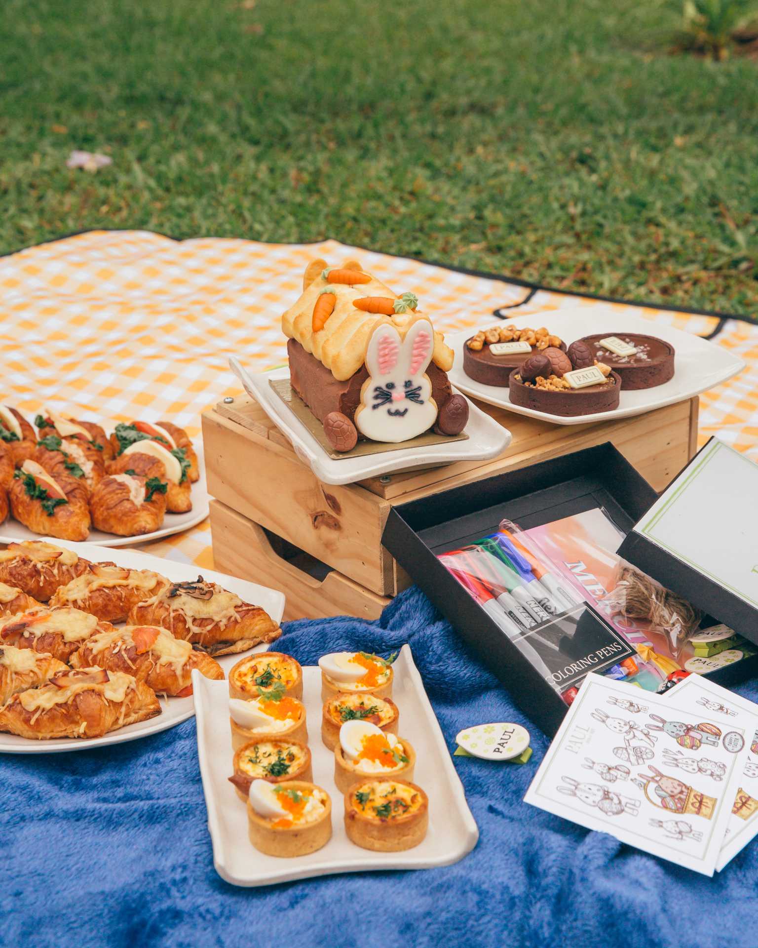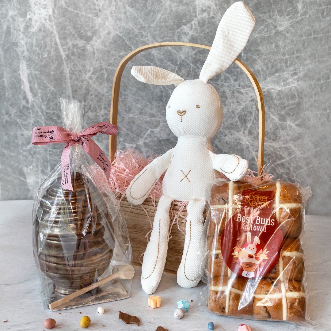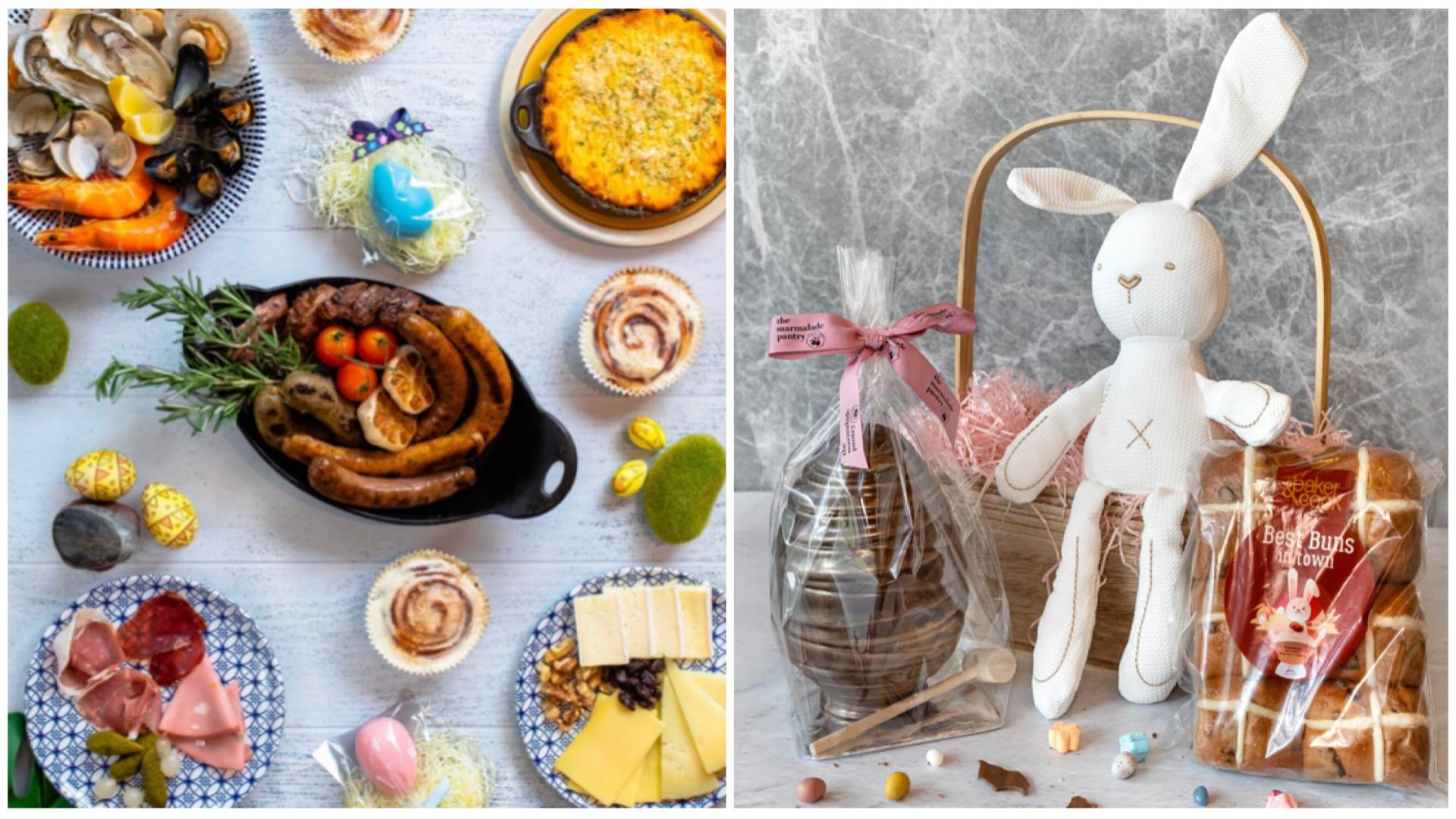 For an at-home Easter feast, order the Eggs-tra Heapin’ Easter Bonanza ($120) that comes with the bunny house, three chocolate tarts, boxes of mini quiches, croissant sandwiches and viennoiseries, and a postcard and colour kit that will keep the little ones busy while you help yourselves to all those tasty treats.