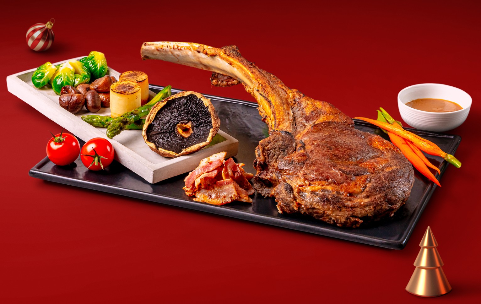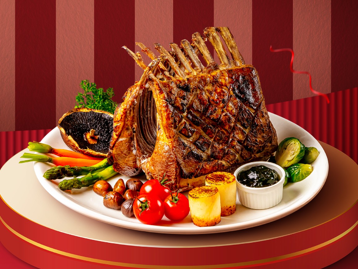 If you’re in the market for impressive meats, Resorts World Sentosa has a selection of worthy proteins that will feed a small crowd. A 1.5kg Grain-fed Tomahawk ($308) is roasted with black pepper and paprika, while a 1.6kg Lamb Rack ($288) is oven-roasted to tasty succulence.