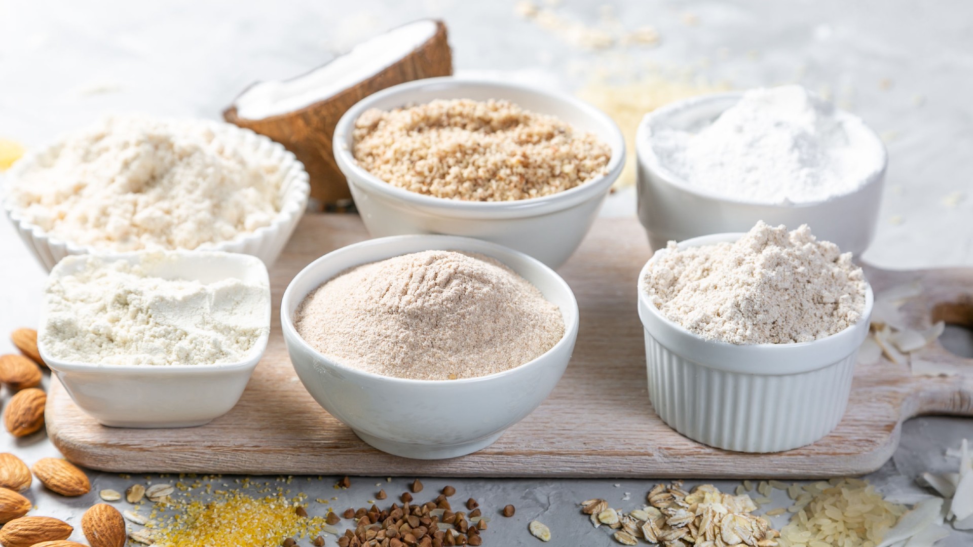 Substitute two cups of almond flour for every one cup of white flour for gluten-free baked treats. Made from ground raw almonds, almond flour (or almond meal which is slightly courser) contains more protein, unsaturated fat, vitamin E, fibre, calcium and magnesium than white flour.
