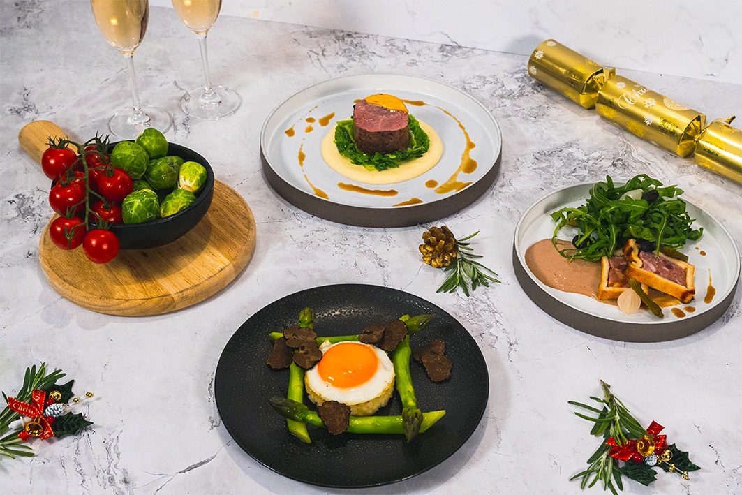 Available throughout December (except from 24-26 December), the four-course festive menu ($88) at this atmospheric restaurant comes with warm, hearty offerings. Highlights include homemade pate en croute and chicken liver mousse, and pan-seared seabass with roasted winter vegetables. For dessert, there’s a classic Christmas pudding topped with brandy butter and wild berry compote. And in the spirit of giving, every pair of diners receives a 30ml bottle of Maison 21G perfume.