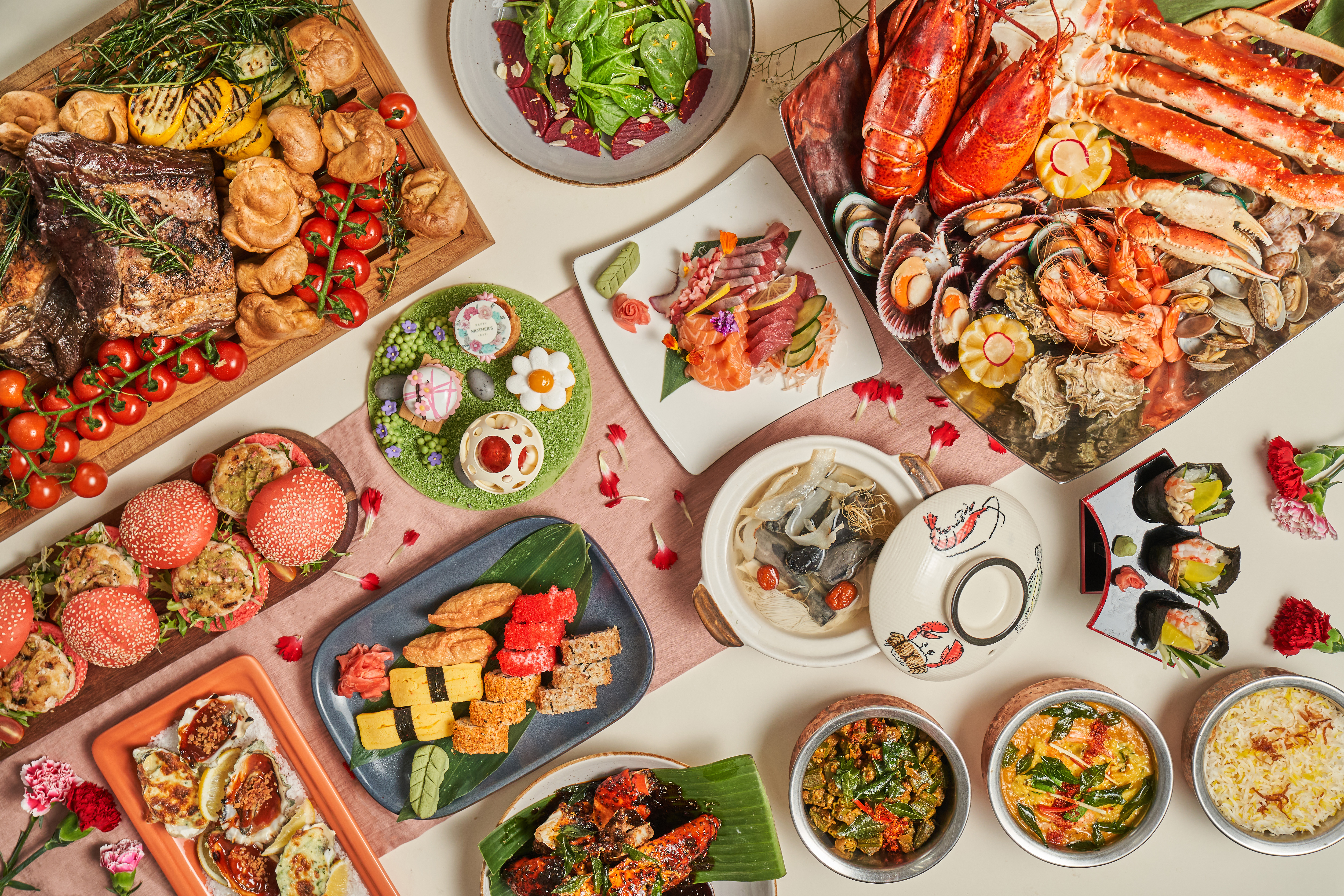 This well-loved buffet commemorates Mother’s Day throughout the weekend of 7 May, with a spread that’ll please mums with even the fussiest palates. There’s everything from freshly shucked Canadian oysters, superior double-boiled soup with Chinese yam, vegan chicken salads, and desserts galore. On 9 May, the spread is extra special, with fresh Boston lobsters and Alaskan king crab legs that mum can tuck into to her heart’s content. For reservations, call 6213 4398.