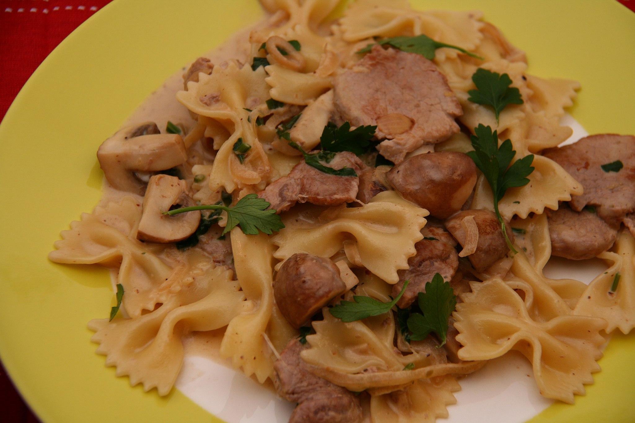 Eat it with: Fresh tomato sauces or cream-based sauces like creamy mushroom sauce and classic alfredo sauce. Farfalle is also commonly served with grilled vegetables, chicken and lean meats.