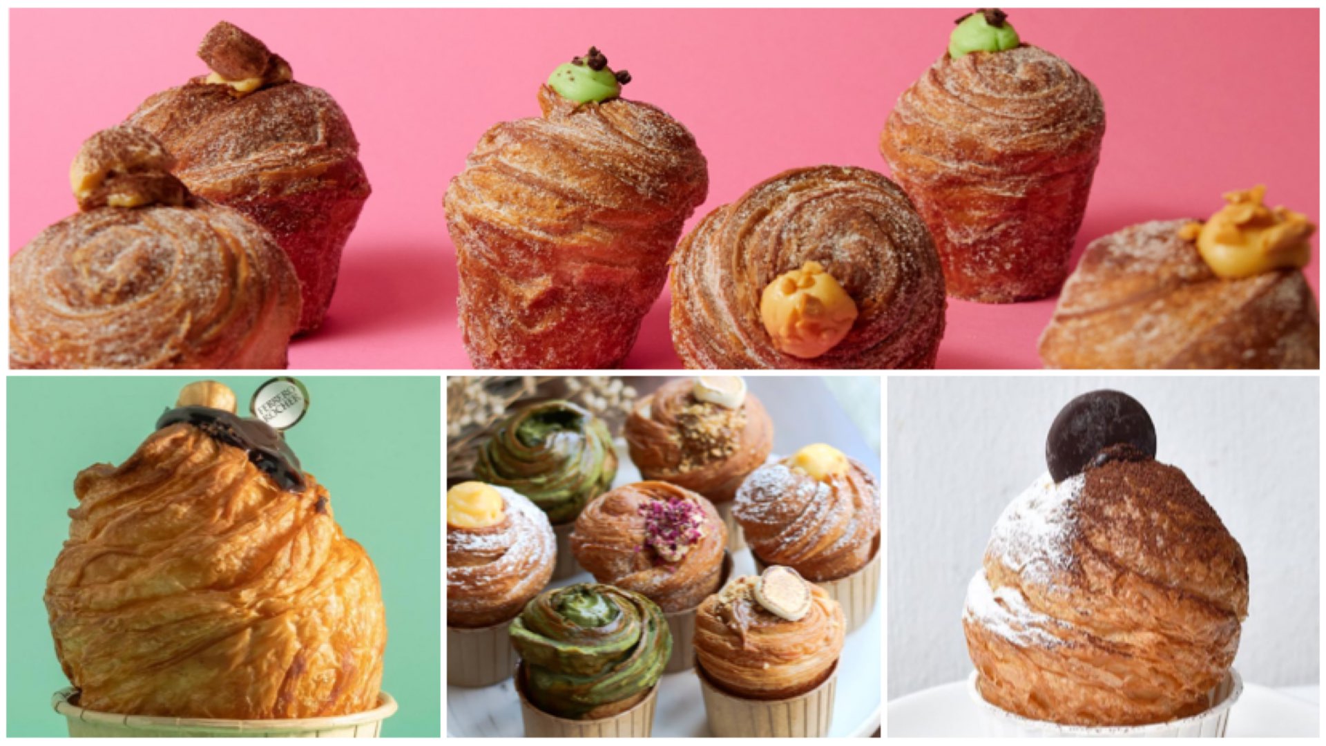 Looks like a muffin, feels like a croissant. Photos: (Clockwise from top) Mr Holmes Bakehouse, Instagram/@keongsaikbakery, @breadyard, @bakerybrera