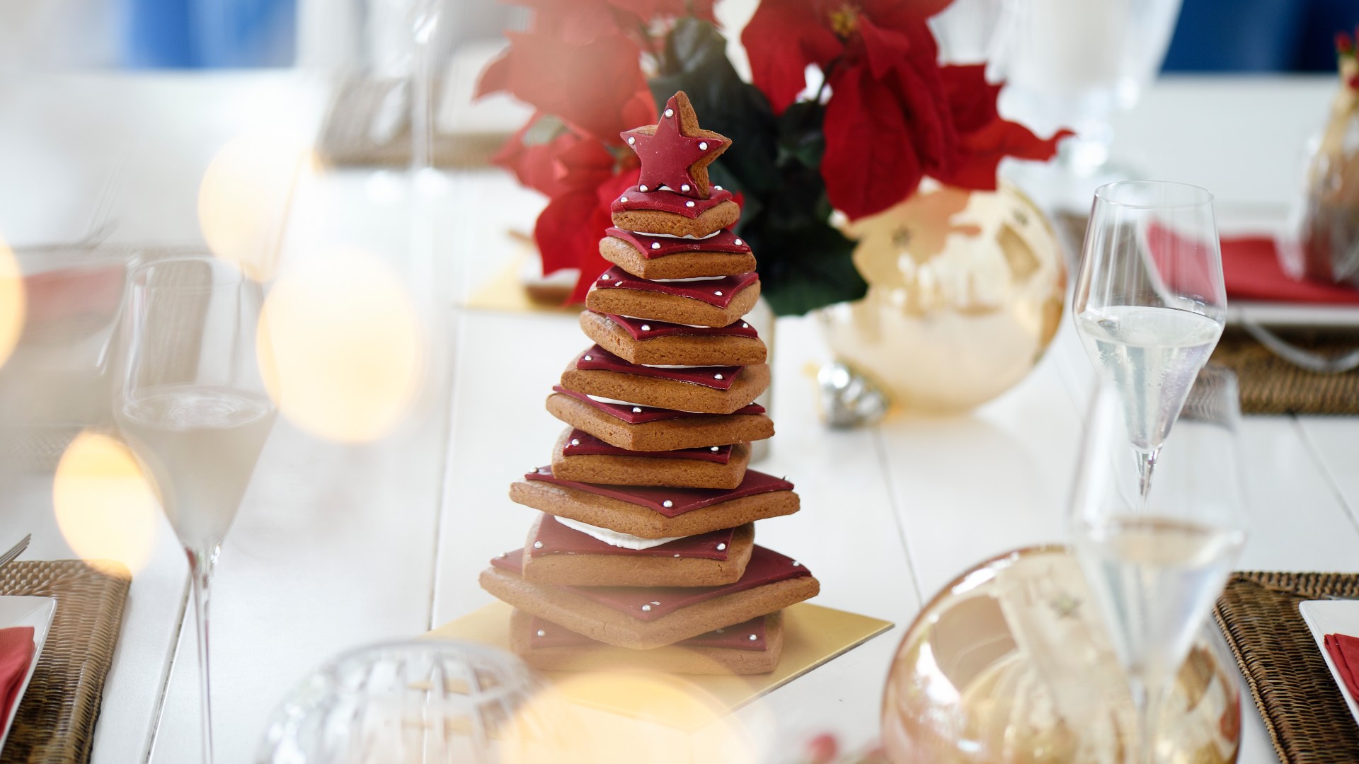 Hungry for more? Go all out with a simple yet elegant Gingerbread Christmas Tree, made of several tasty gingerbread pieces stacked together to build a mini Christmas tree, complete with gingerbread star on top.