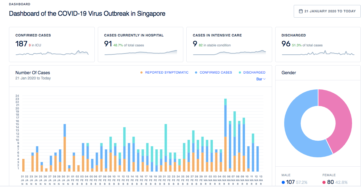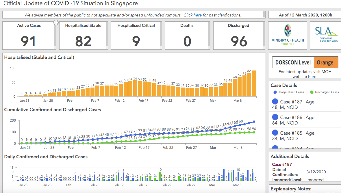 Why we like it: Talk about a big flex. These coders are putting their skills to good use and presenting data in a way that is succint and easily digestible. From stats on the patients’ gender, age and nationality to whether it’s a locally transmitted or imported case, it's easily the most comprehensive site out there.
