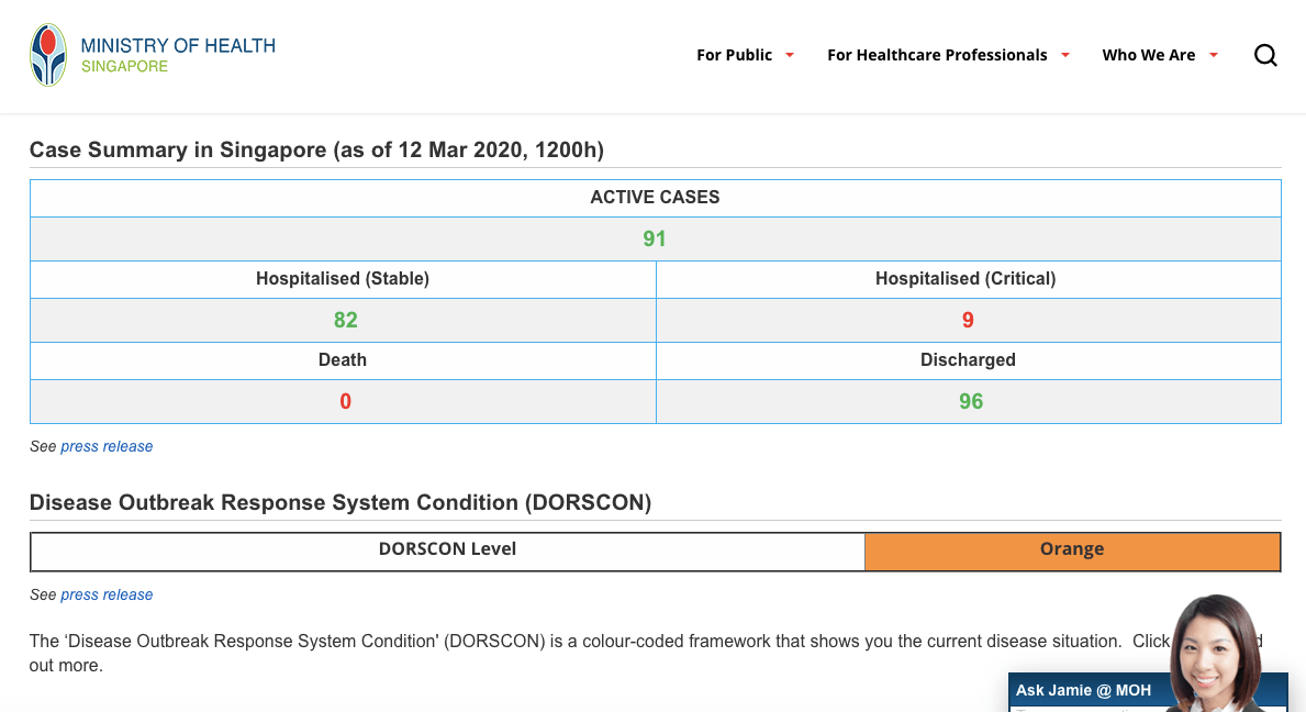 What it does: The government's official repository and central hub for the latest COVID-19 updates, including a case summary table and current DORSCON level.