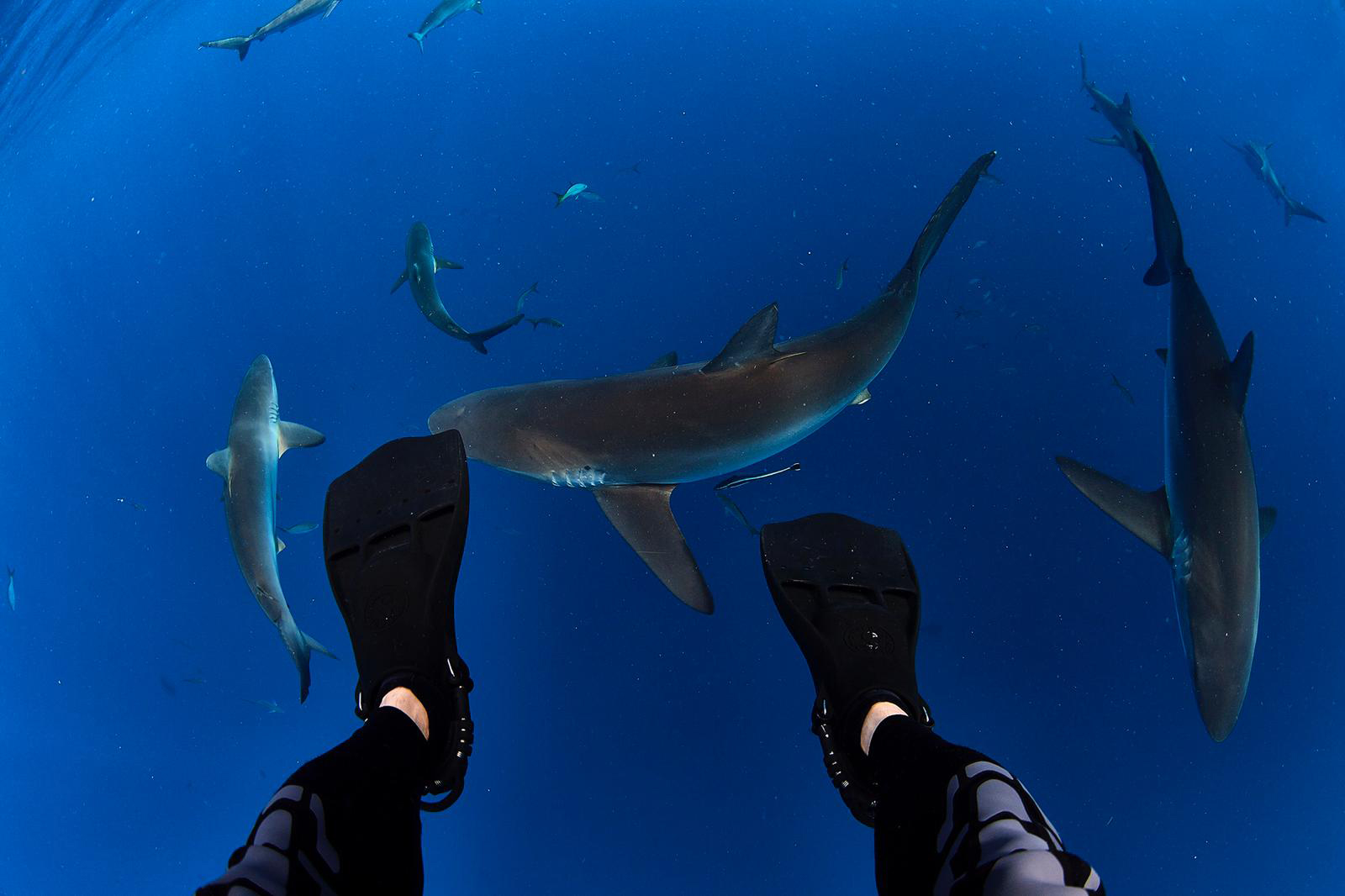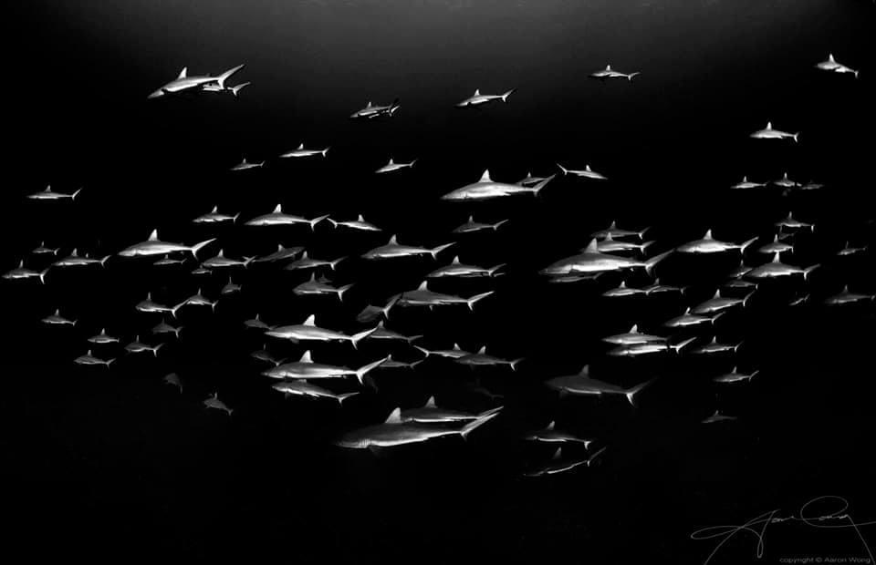 Cannot count leh! (laughs) In French Polynesia, there’s a small little atoll called Fakarava. There’s a channel there, a big drain where the ocean passes through in between tides called Fakarava South Pass. Every July, groupers will congregate here by the thousands to spawn. And because of that, sharks congregate here, too. And that’s where you get the famous wall of 20-30,000 sharks (mostly grey reef and blacktip) that goes on for more than a mile. Visibility is 40m - like swimming pool! You can swim right up to them and you’ll be surrounded by thousands of sharks.