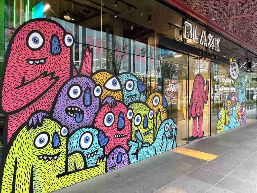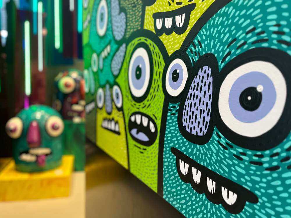 To cope with his mental health issues, the self-taught artist would doodle mindlessly – a process that brought calm to the chaos, and resulted in the vibrant-hued bug-eyed beasts you see at BLAXK and CO PLAY, a pop culture art space on Level 3 of Plaza Singapura.