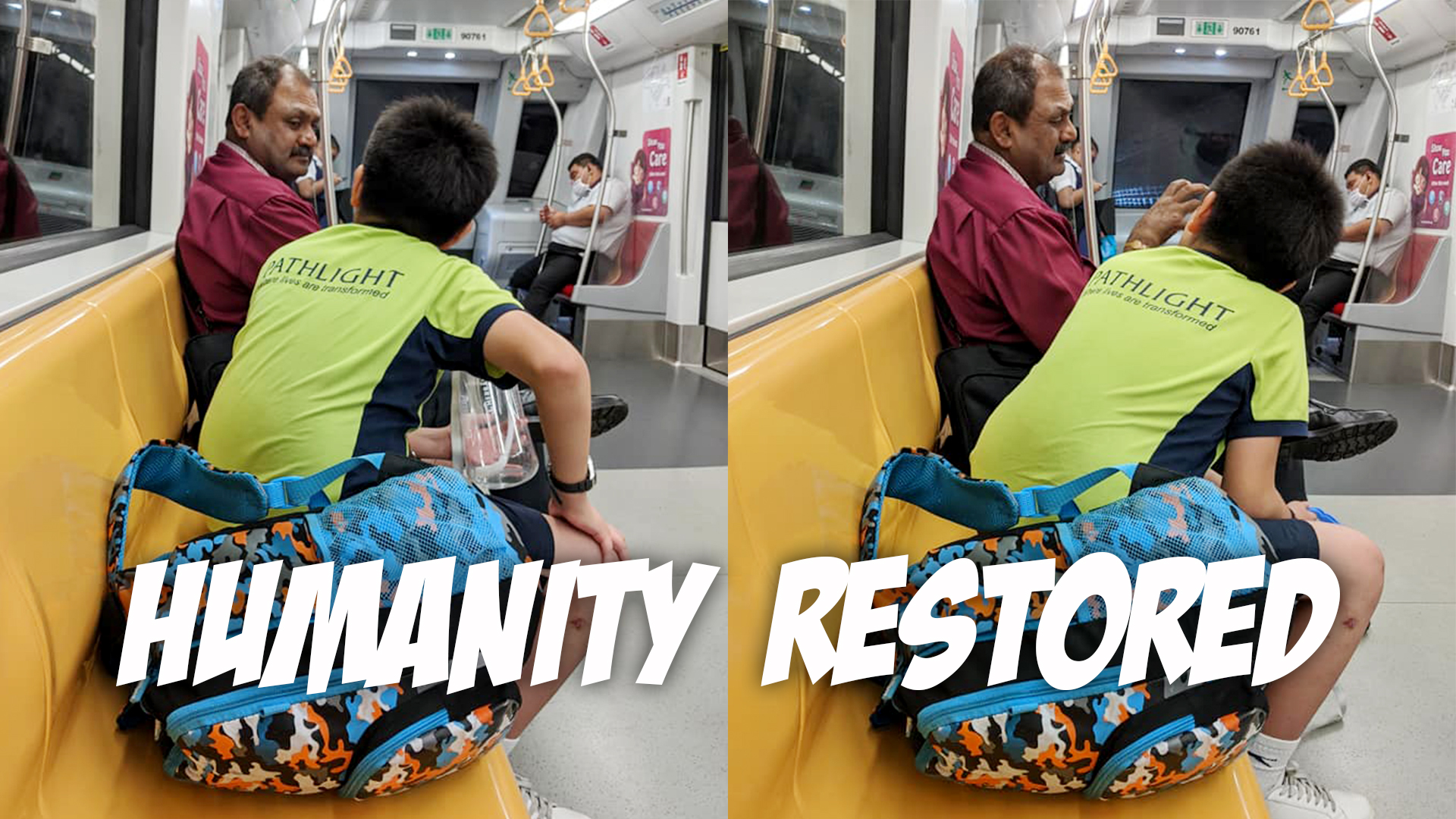 While most of us are staying home during this COVID-19 circuit breaker, some people still have no choice but to go out. FB user Kelvin Ang captured this touching moment on a near-empty MRT train: