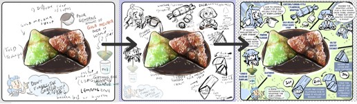 Because my kueh illustrations are not drawn to be photo-realistic, it is actually the easiest part to tackle. On the contrary, it is the research and writing that is the most challenging for me. I would fact-check from multiple sources, conceptualise then plan out how I can fit as many key information as I can into my illustration. Not to mention making spontaneous trips to hunt down and eat each kueh I am researching for the week - many people have assumed that I just love eating kueh, but it is usually for work-purposes, really!
