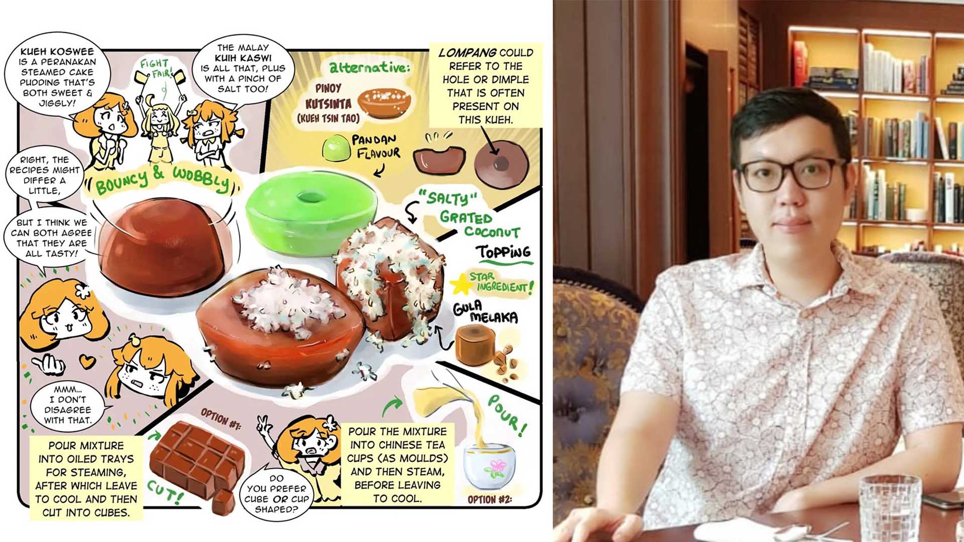 It’s impossible not to feel stomach pangs while scrolling through Clement Tea (a.k.a. Clement Tan)’s Instagram account. Since 2019, the 35-year-old Singaporean has been posting lovingly-drawn illustrations of kueh, alongside essay-long captions describing their origins, their taste profiles, and how even tips on how to enjoy them.