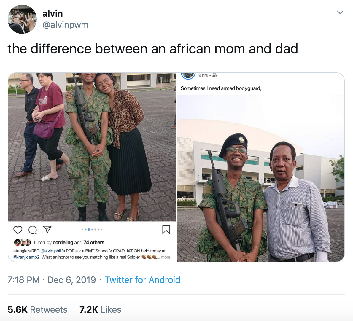 If any of these faces look familiar, it’s because 21-year-old African-Singaporean NSF Alvin went viral last year after tweeting about his parents’ hilariously contrasting responses to his Passing Out Parade (POP) in December 2019.