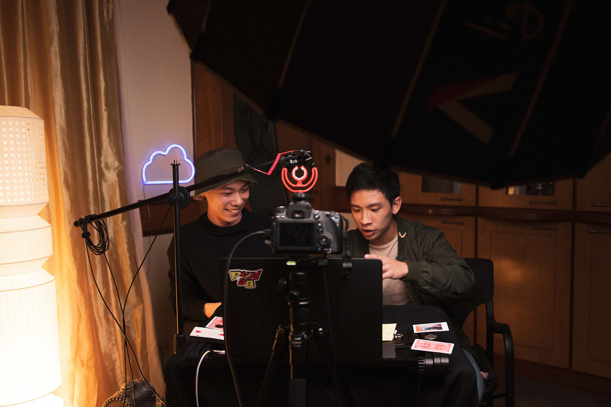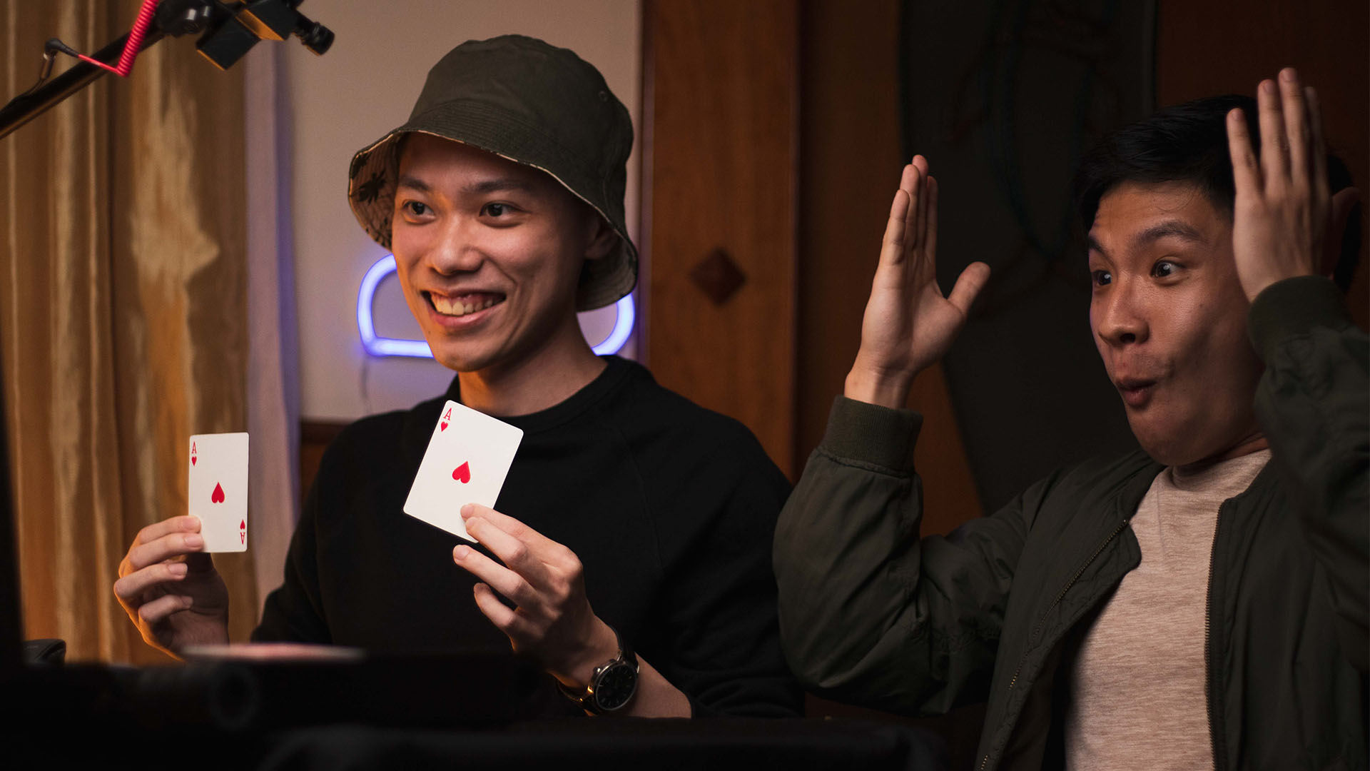 On top of performing magic at restaurants, at small events, and on stage (prior to COVID-19), Darren and Jerryl also stage theatrical magic. Their latest show, Playing the Hand (directed by Dwayne Lau), streamed in August as part of Flipside, presented by Esplanade – Theatres on the Bay.