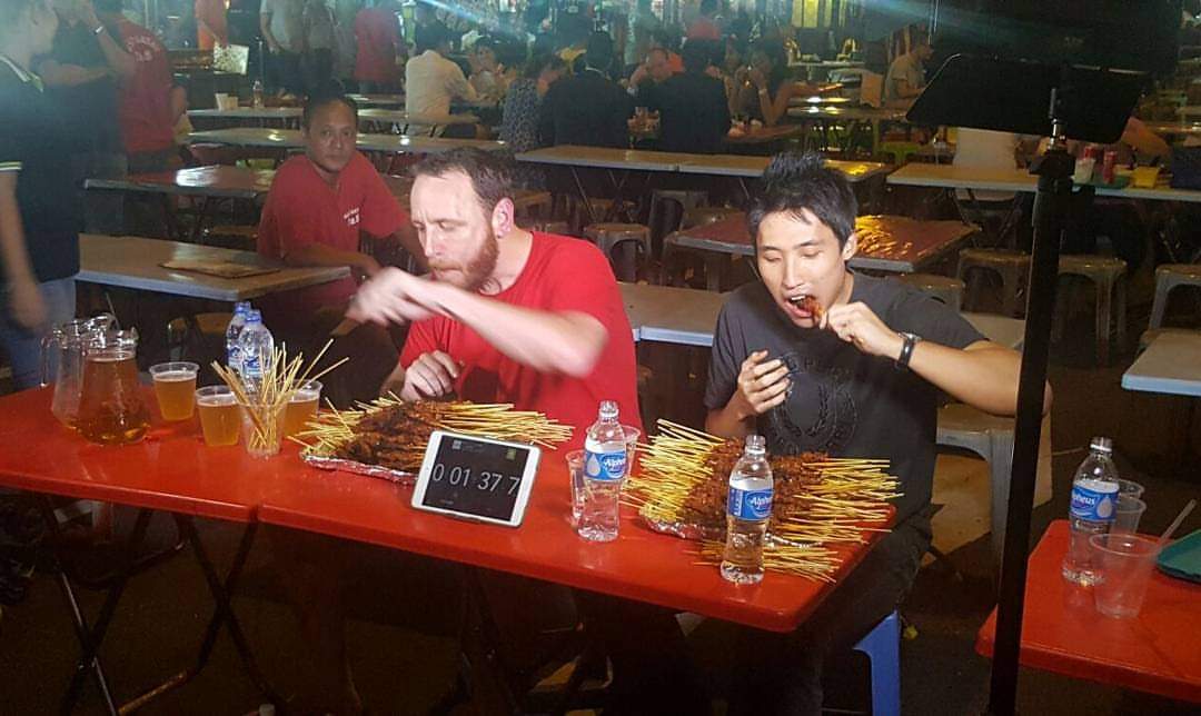 (Zermatt battled Joey in a satay-eating contest in 2016. Joey demolished 200 sticks of satay in 10 minutes while Zermatt did it in 19 minutes. It was after this little contest that he figured how far behind he was when competing against the best, and that was what kickstarted his training.)