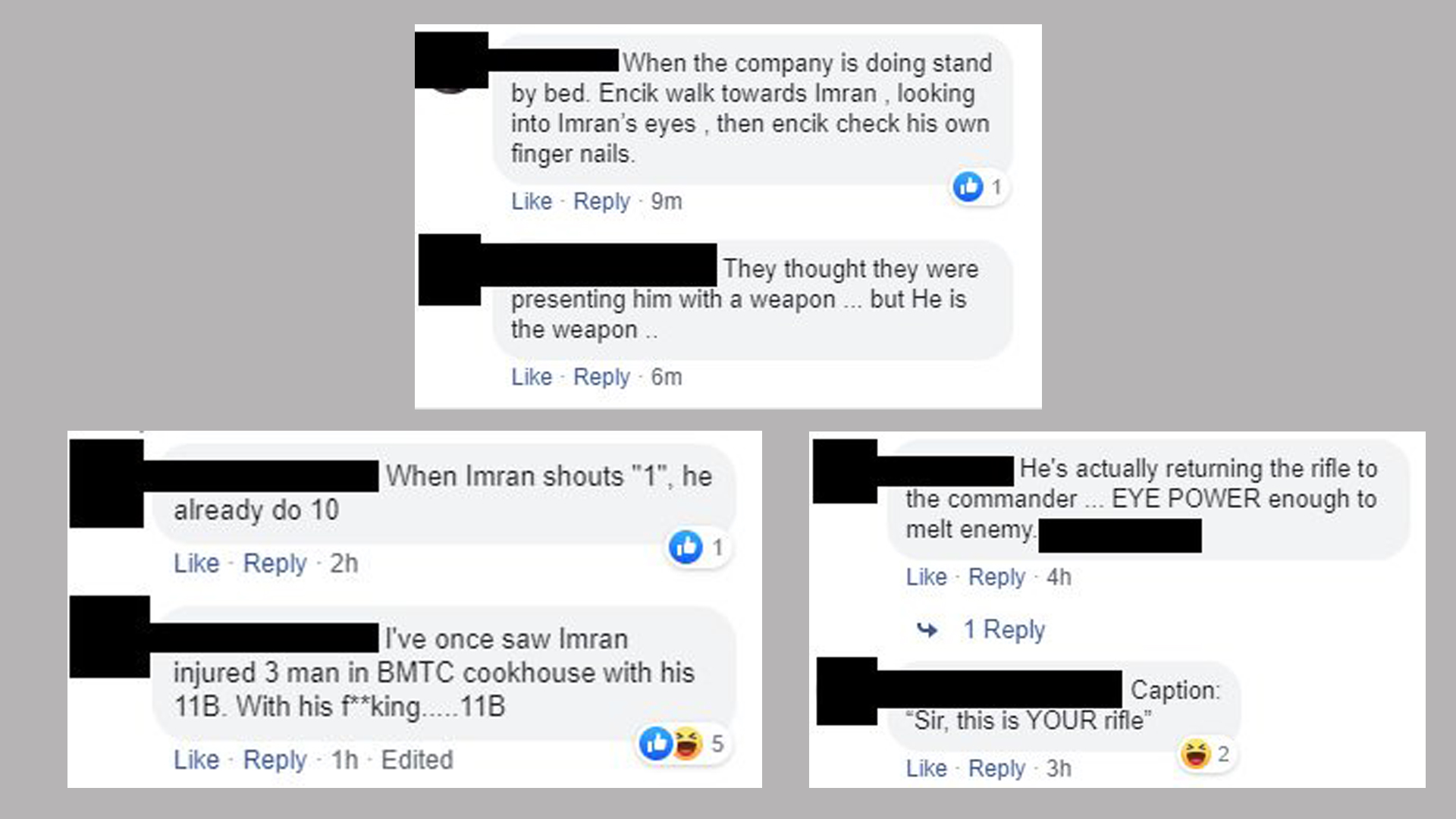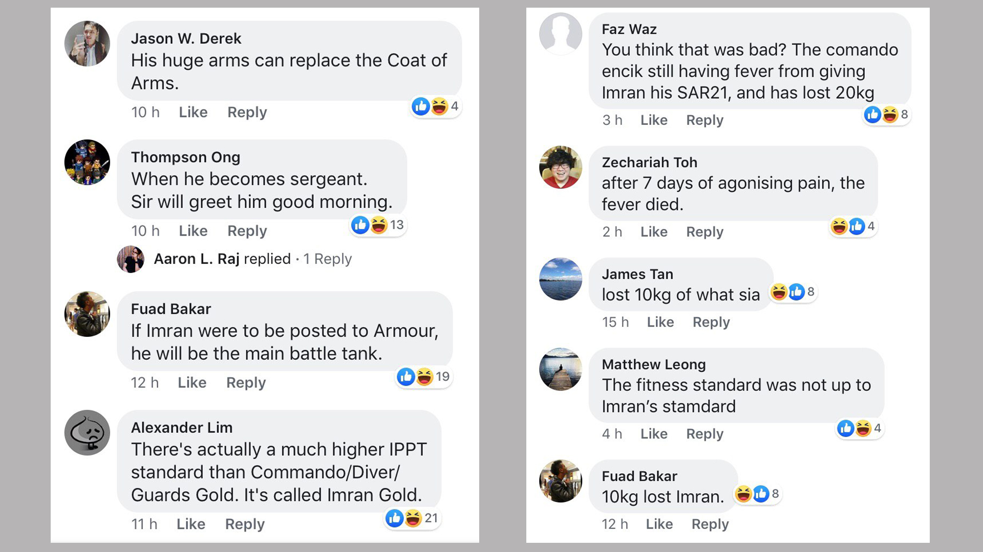 Chuck Norris has nothing on Imran. He is the man, the myth, the legend who captured the public's imagination after a photo of him in all his swole glory on the Basic Military Training Centre Facebook page went viral. He has since spawned countless of memes, parodies and comments.