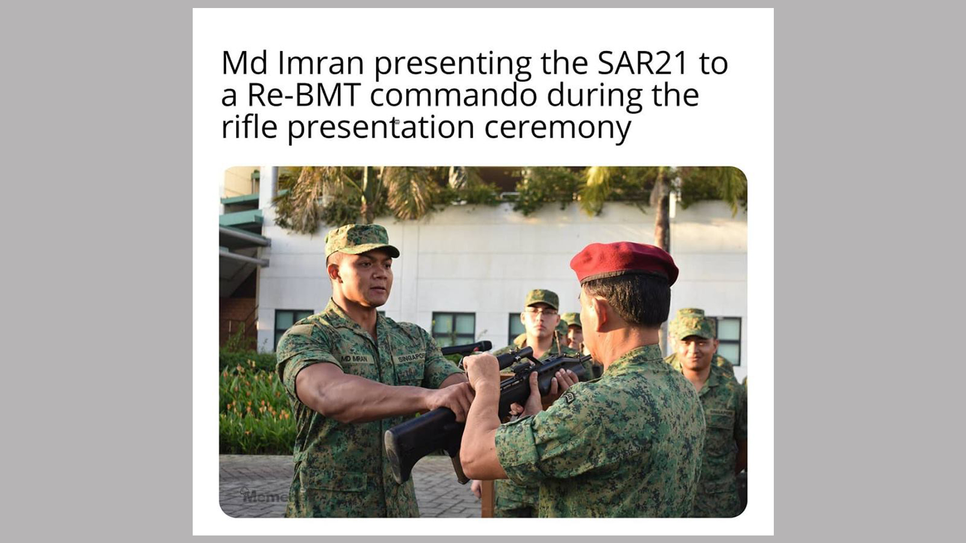 Encik, semula! It doesn't matter if you're a Warrant Officer Commando with years of army experience. You are only worthy of holding your SAR 21 when Swoldier Imran says so.