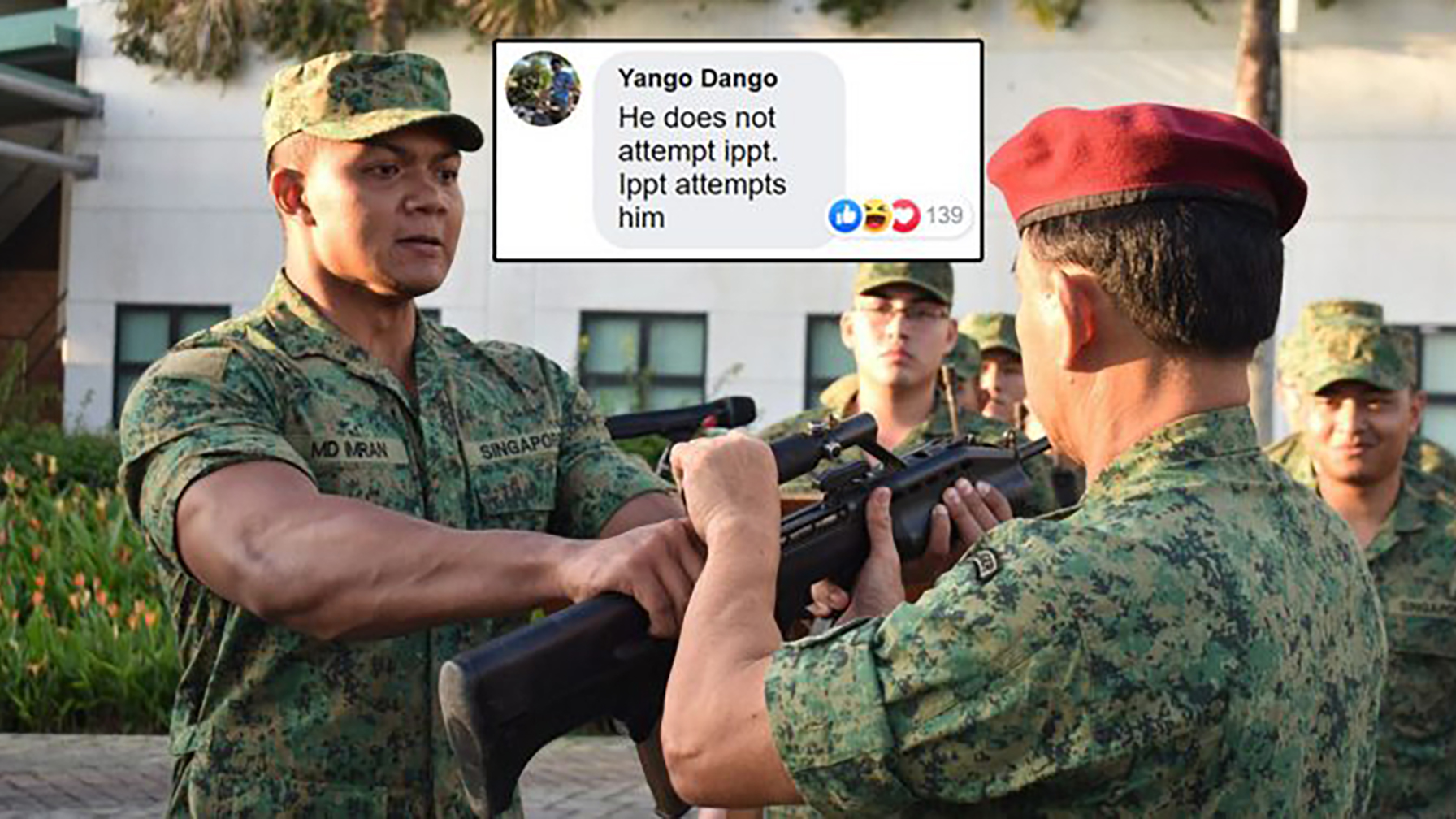 The IPPT used to consist of 5 stations. Now it's currently made up of 3. But with Swoldier Imran, there is no need for a station. Because he IS the station. Next stop: Jalan Besar.