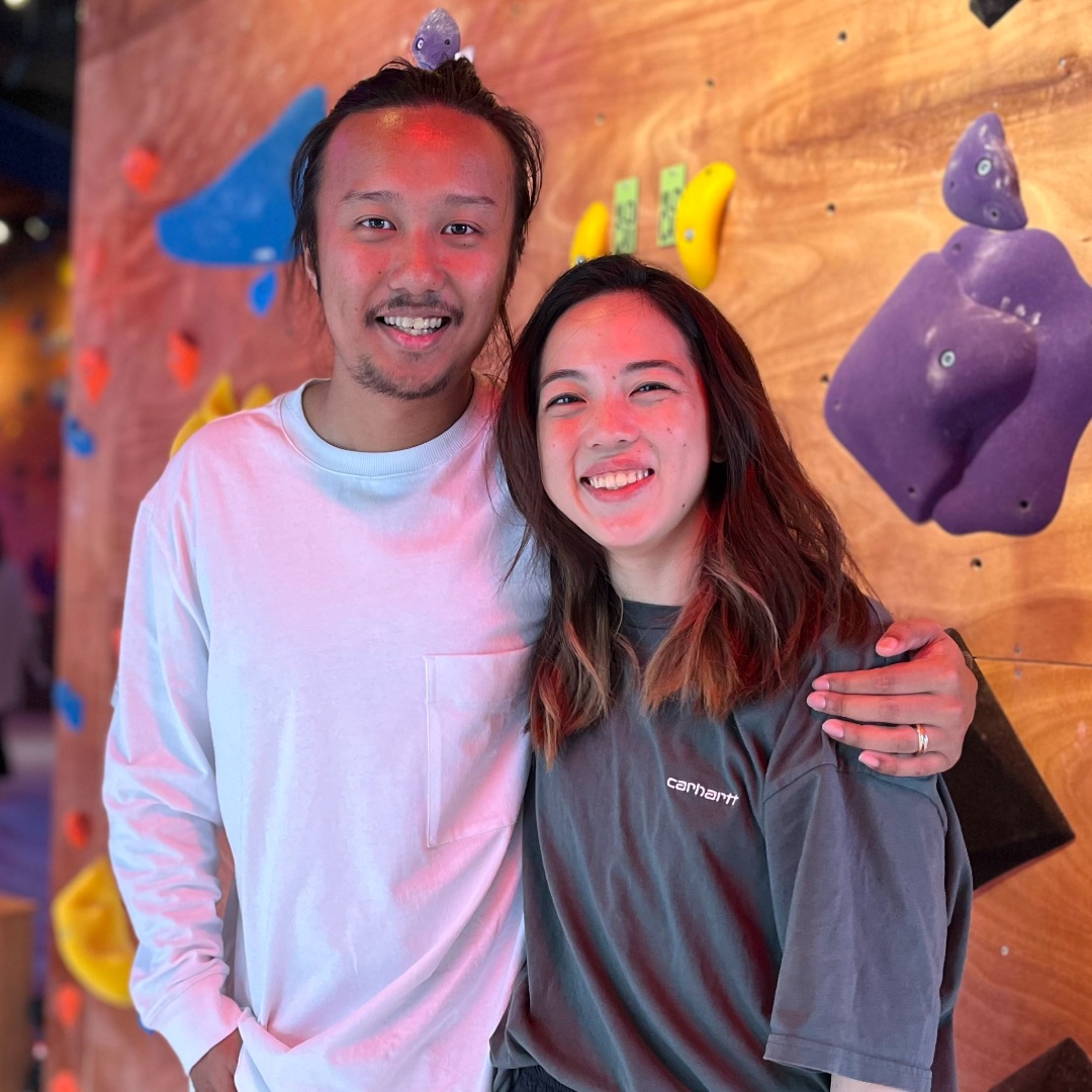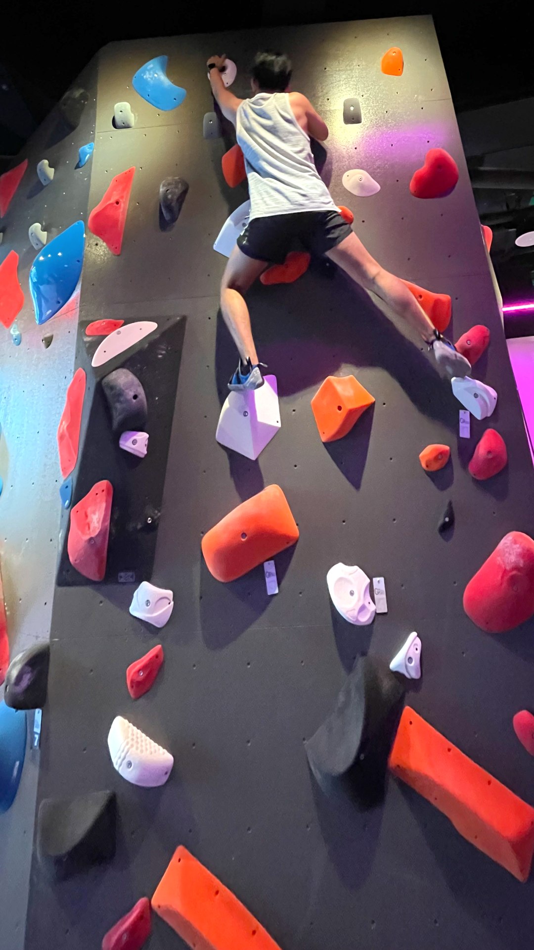 Sarah: Ken was on a 75-day TikTok challenge where you do two workouts every day for 75 days and have to drink one gallon of water. And he was on this mission to get fit. I think he was doing really, really well. But towards the end, he was getting very bored. He decided that he wanted to try something fresh, and started researching different kinds of workouts. He was talking about how Jason Momoa does rock climbing and bouldering as a form of cardio. And he was like, "oh, a bunch of my friends boulder. I never tried it before. So, why not give it a try?" So, he went – and got addicted to it, like very addicted. Five times a week kind of addicted!