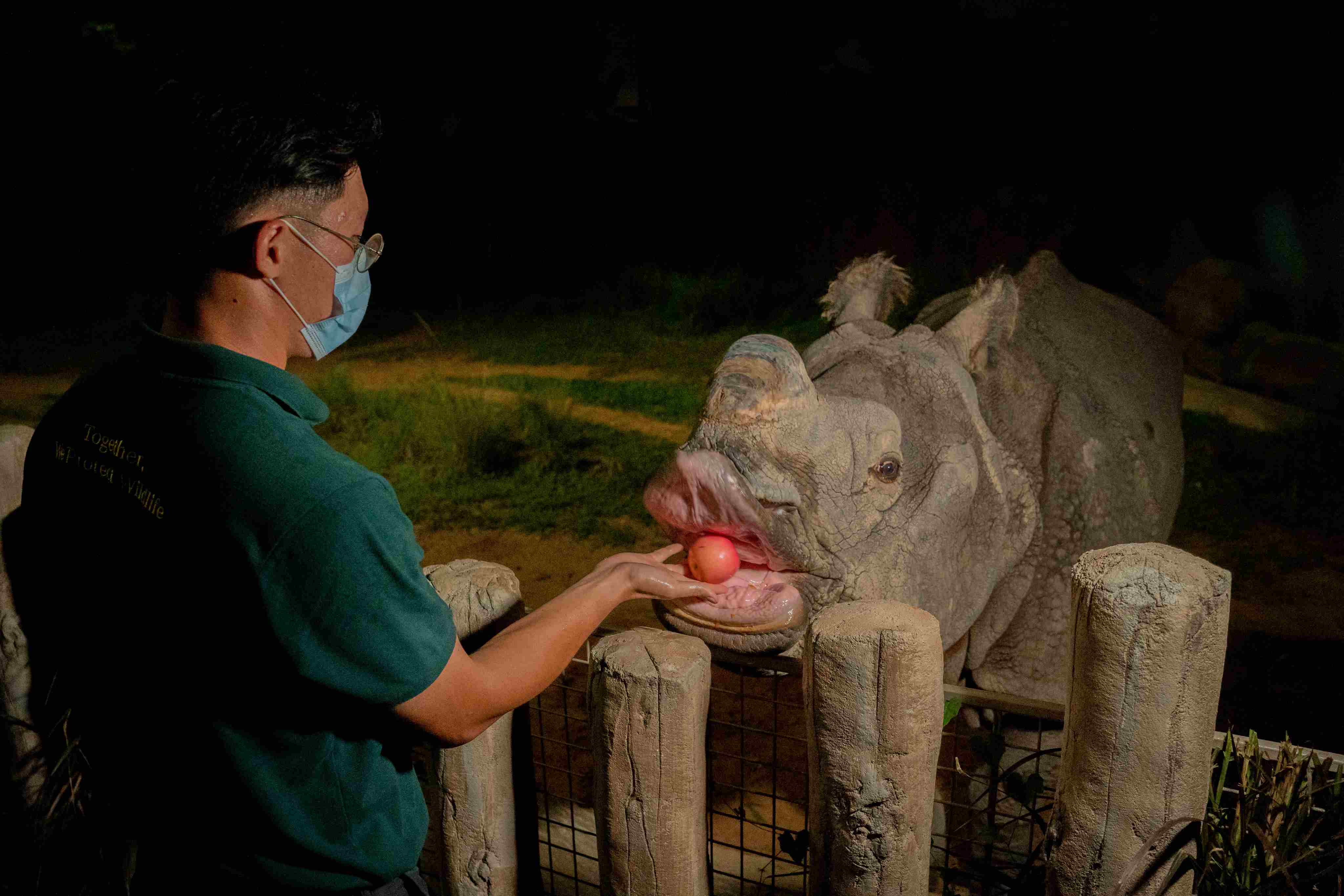 The keeper will be helming a new Indian Rhino feeding experience at the Night Safari, which, for the first time, will allow guests to offer five-year-old Newari his favourite treats of carrots and apples.