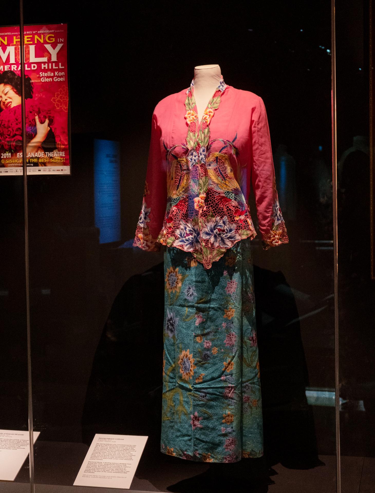 Here, you’ll also see how Peranakan culture has made its way into contemporary arts in the form of a sarong kebaya commissioned and worn as a costume by Ivan Heng in “Emily of Emerald Hill” (a Wild Rice production of a play by Stella Kon) as well as a pair of beaded slippers worn by actress Jeanette Aw in the 2008 drama series “The Little Nyonya”.