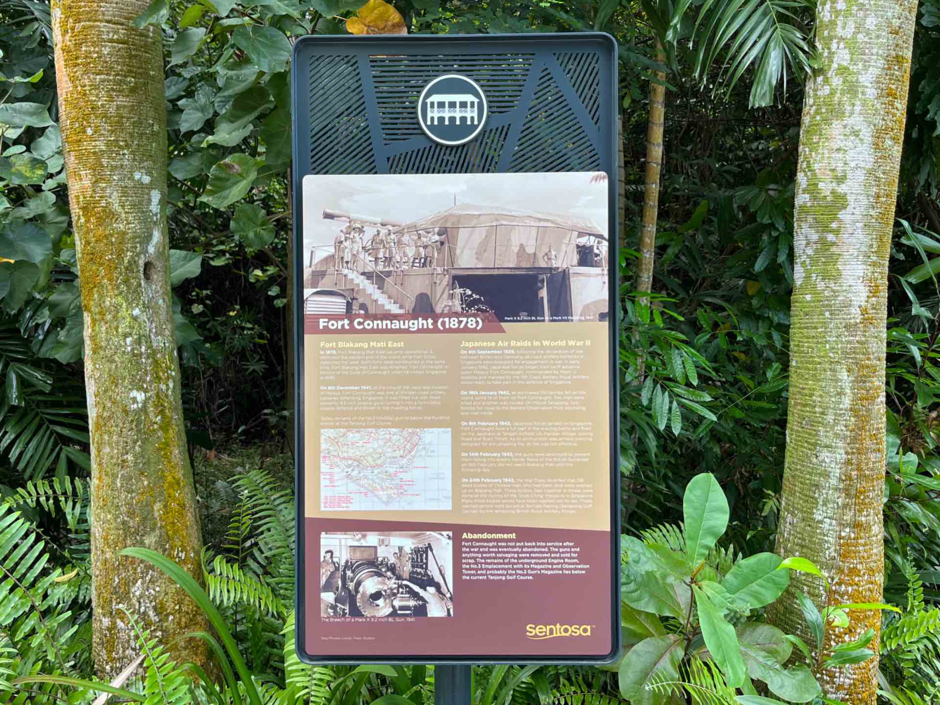Fort Connaught was built for the defence of Keppel Harbour, an important ship-building and repair facility during British rule. The fort was armed with 9.2-inch guns, the biggest on Sentosa island and second biggest in Singapore, behind the 15-inch guns at Changi.