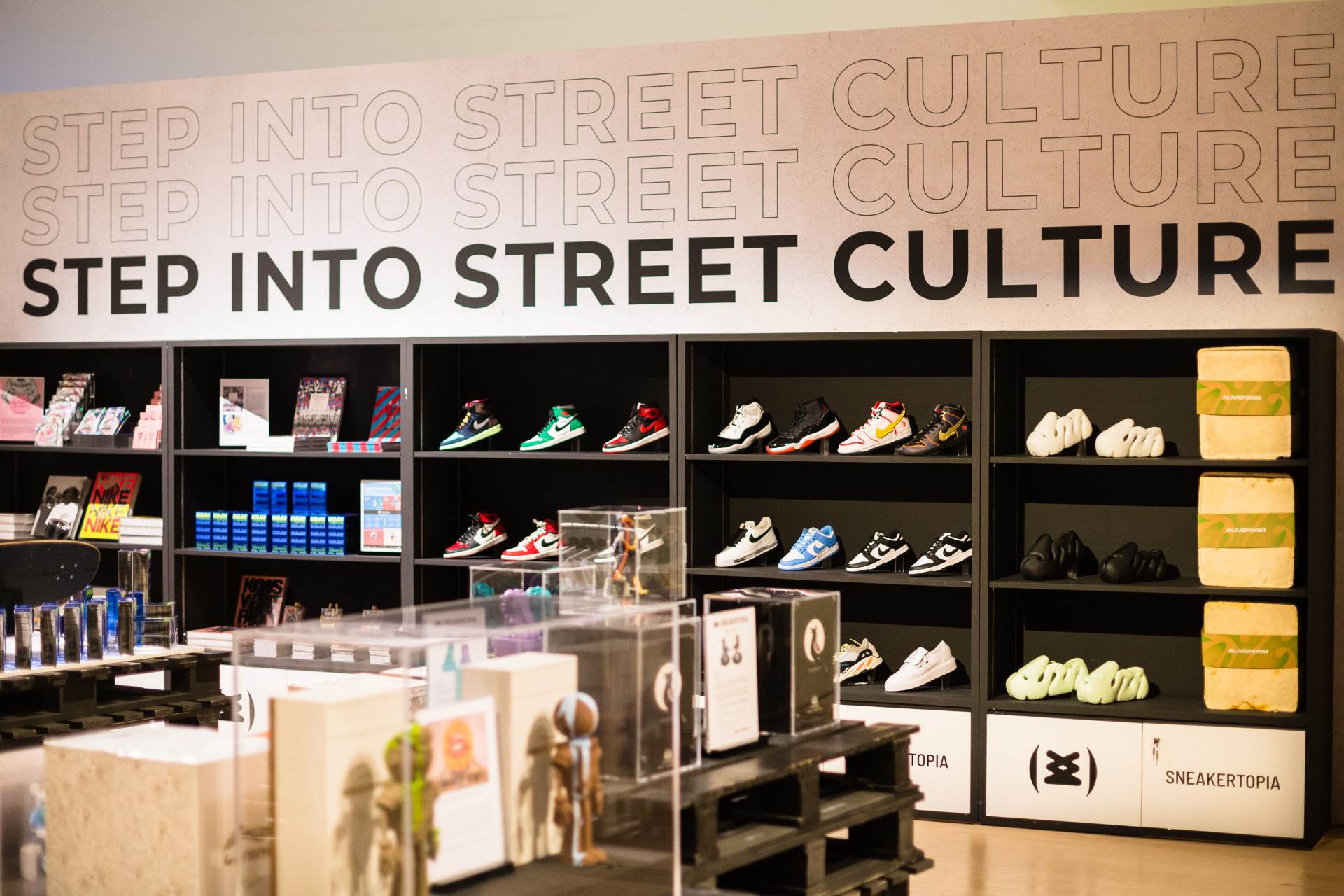 There is also a merch store at Sneakertopia with some exclusive collectables, fresh apparel, rare kicks from Limited Edt, and other cool stuff that you won't find anywhere else, like hand-painted sculptures from exhibiting artists Sam Lo and tobyato.