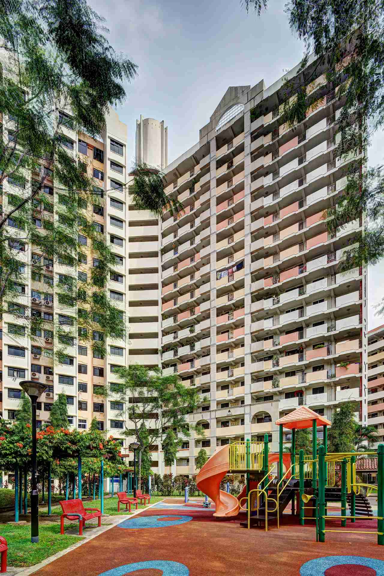 Photo tips: You can get a clear upward view of the imposing and symmetrical building architecture from the flat's playground. Apart from heading up to the rooftop, the stairwell at the top floor makes for an interesting photo too.