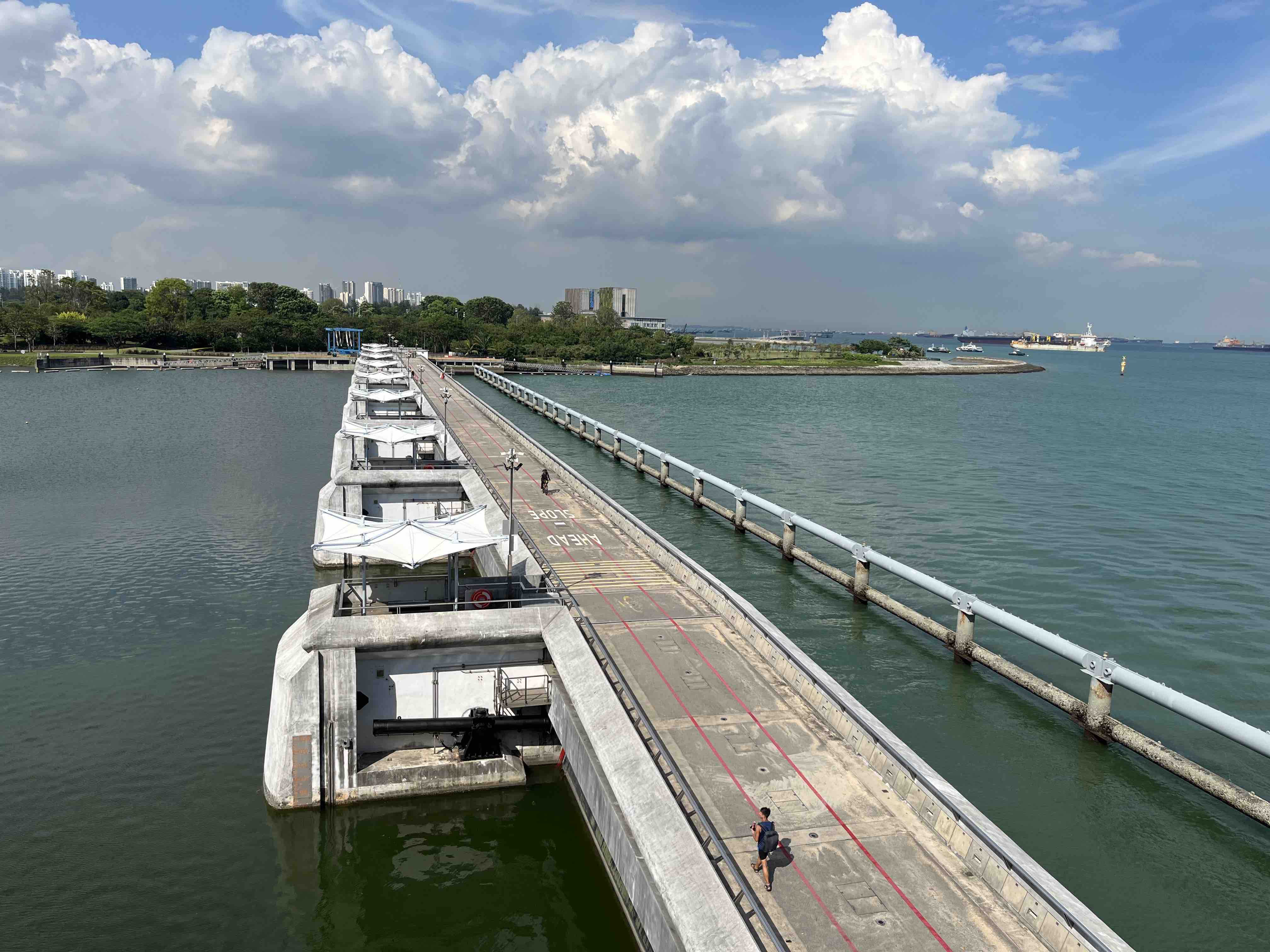 It’s about a 15-minute walk from Marina South Pier to Marina Barrage, with a dedicated cycling and walking pathway surrounded by lots of greenery. Fair warning, it can get really hot, so we highly recommend cycling instead of walking.