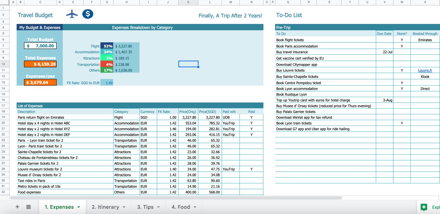 Set up an expense tracker to keep tabs on your spending – we don't want to overrun our budget even before setting foot in our dream destination! Last but not least, start a to-do list of bookings that you have to make before departure (never hurts to get a reservation made). I'll admit, the Type-A in me loves ticking off each accomplished task on the list.