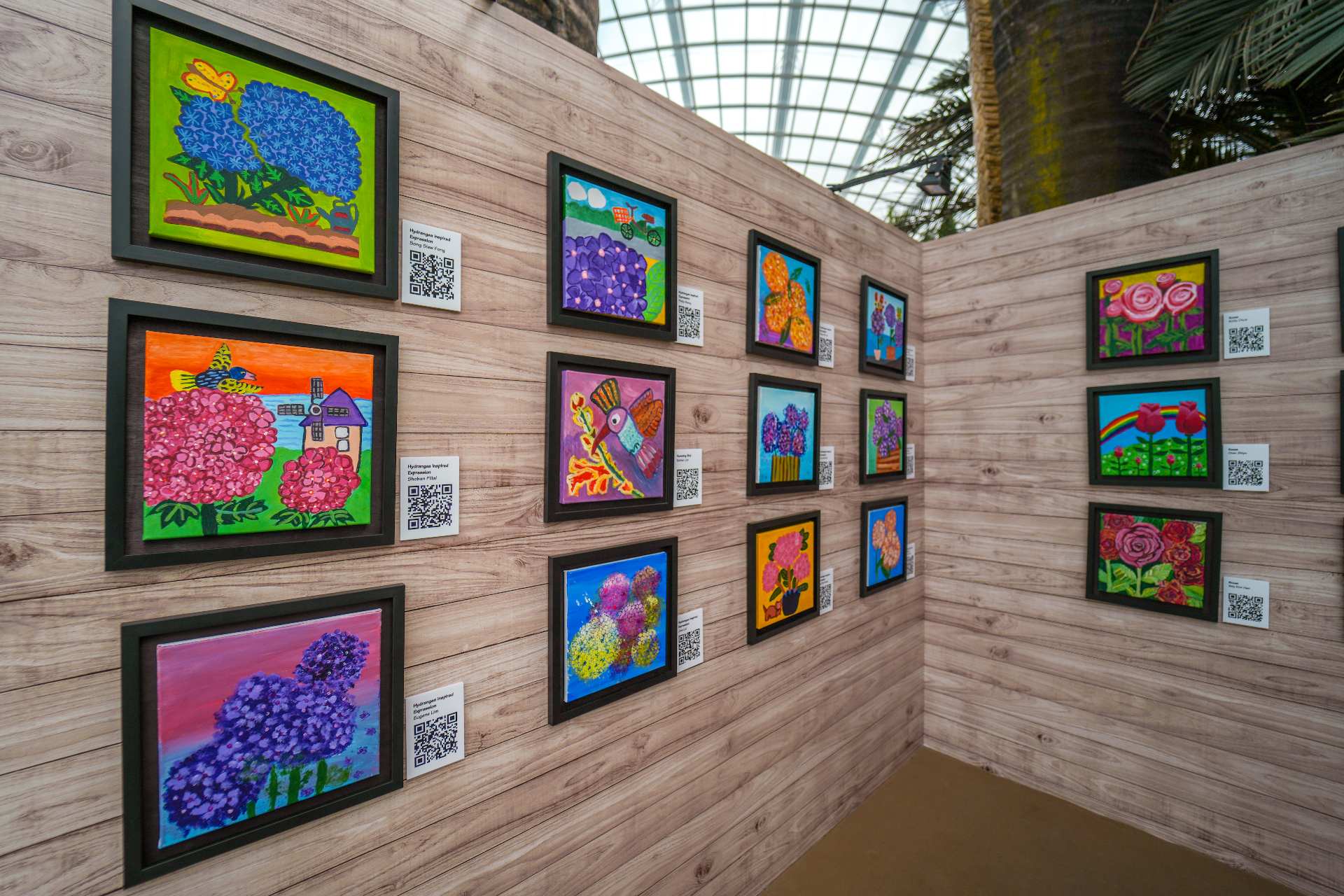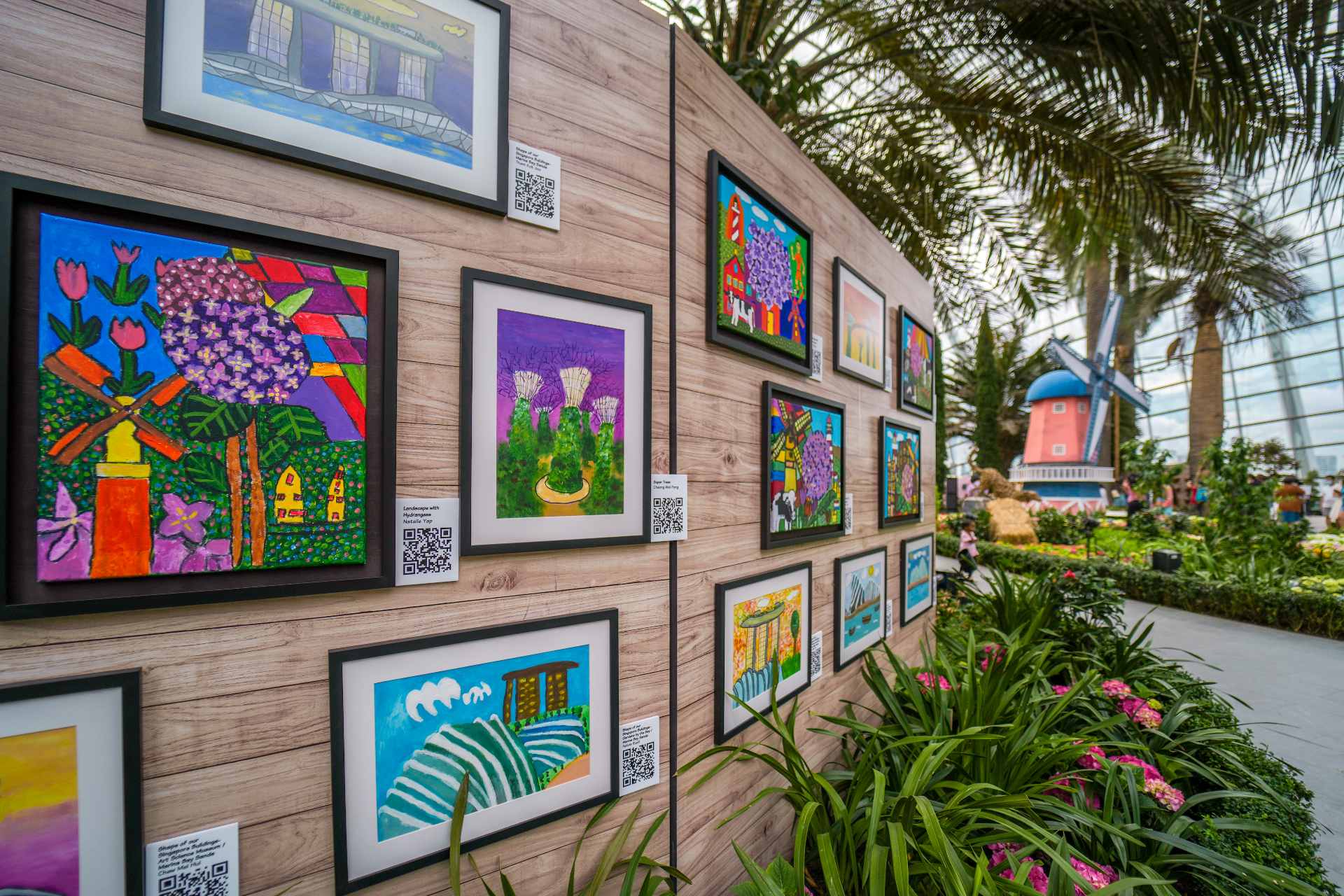 Perfectly complementing the floral display are 50 artworks by special-needs artists from Journey (a Singapore brand that represents the creative talents of those with intellectual disabilities) by Touch Community Services, one of the beneficiaries of Gift of Gardens, a Gardens by the Bay initiative that gives the underprivileged community complimentary access to the Flower Dome and the Cloud Forest.