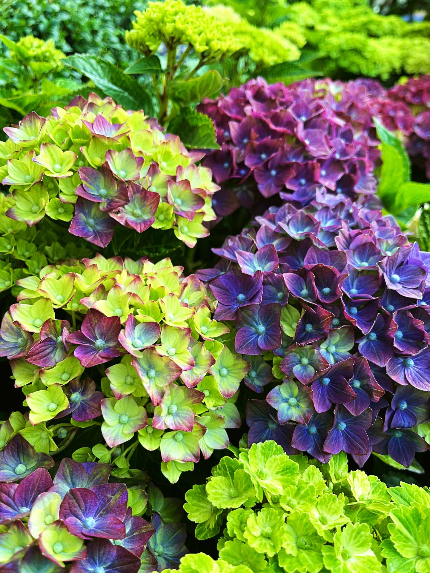 But it's the 20 varieties of hydrangeas that are the true stars of the show - whether they are observed up close or viewed as a panorama of variegated blooms.